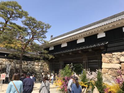 園内には桜が植えられていて、ちょうど満開で綺麗でした。特に三ノ丸跡のあたりは、天守を背景にすると、桜と相まって絶好の撮影スポットでした。また、花回廊というイベントが開催されていて、園内の各所に各流派の生け花が置かれていて華やかでした。アクセスも良く、散策に良い場所だと思います。