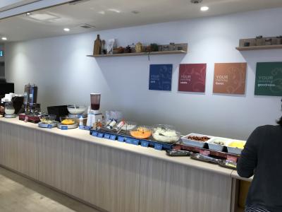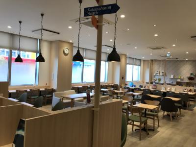 高知駅から徒歩5分と立地が良かったです。昨年10月にオープンしたばかりとのことで、新しくて綺麗なホテルでした。1階には宿泊者が利用できるライブラリーカフェがあり、ソフトドリンクがいつでもいただけました。