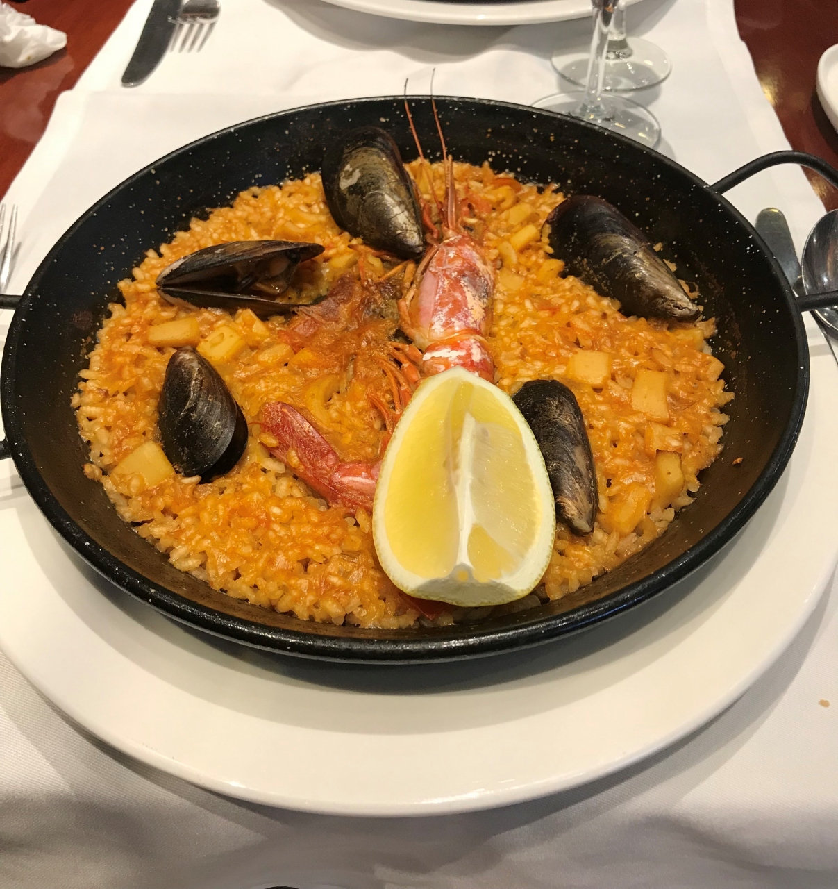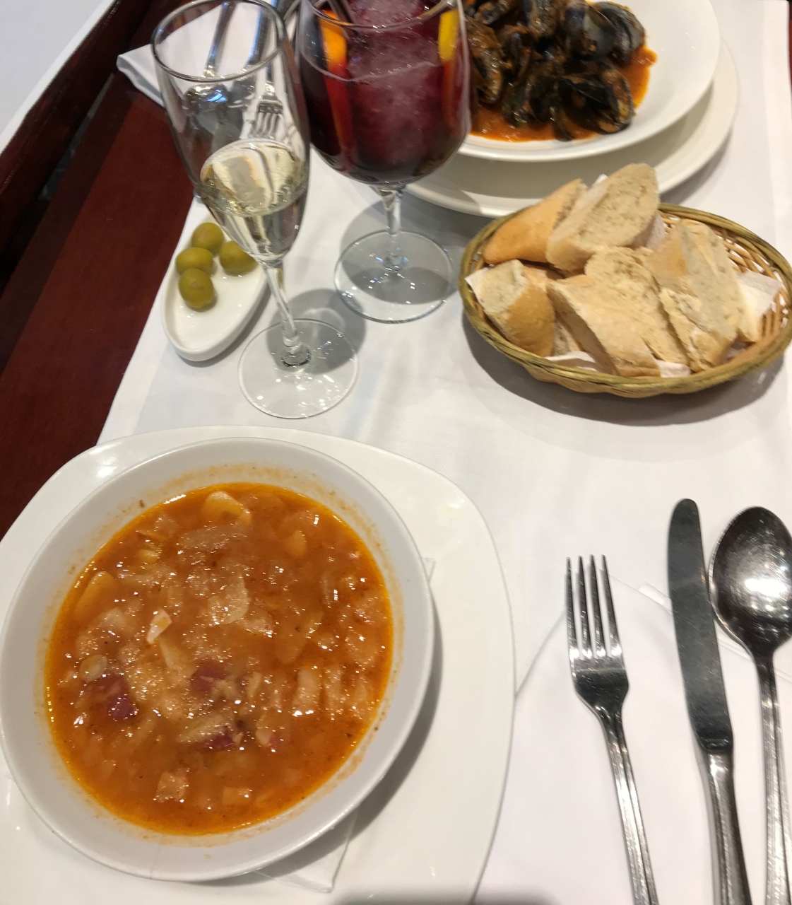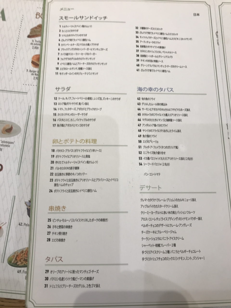 セット(スターター、メイン、デザートのセット)を注文しました。それぞれ、いくつかのメニューから選択ができます。メインはパエリアでした。パエリアは、2人前からしか注文できないお店が多いですが、こちらのセットメニューでは、それぞれ違うパエリアがいただけました。店内も落ち着いた雰囲気で、とても居心地が良かったです。- 旅行時期