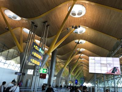 ターミナル4は、2006年に開業とのことで、新しくて綺麗なターミナルでした。有名建築家が手掛けたというデザインも見所です。- 旅行時期