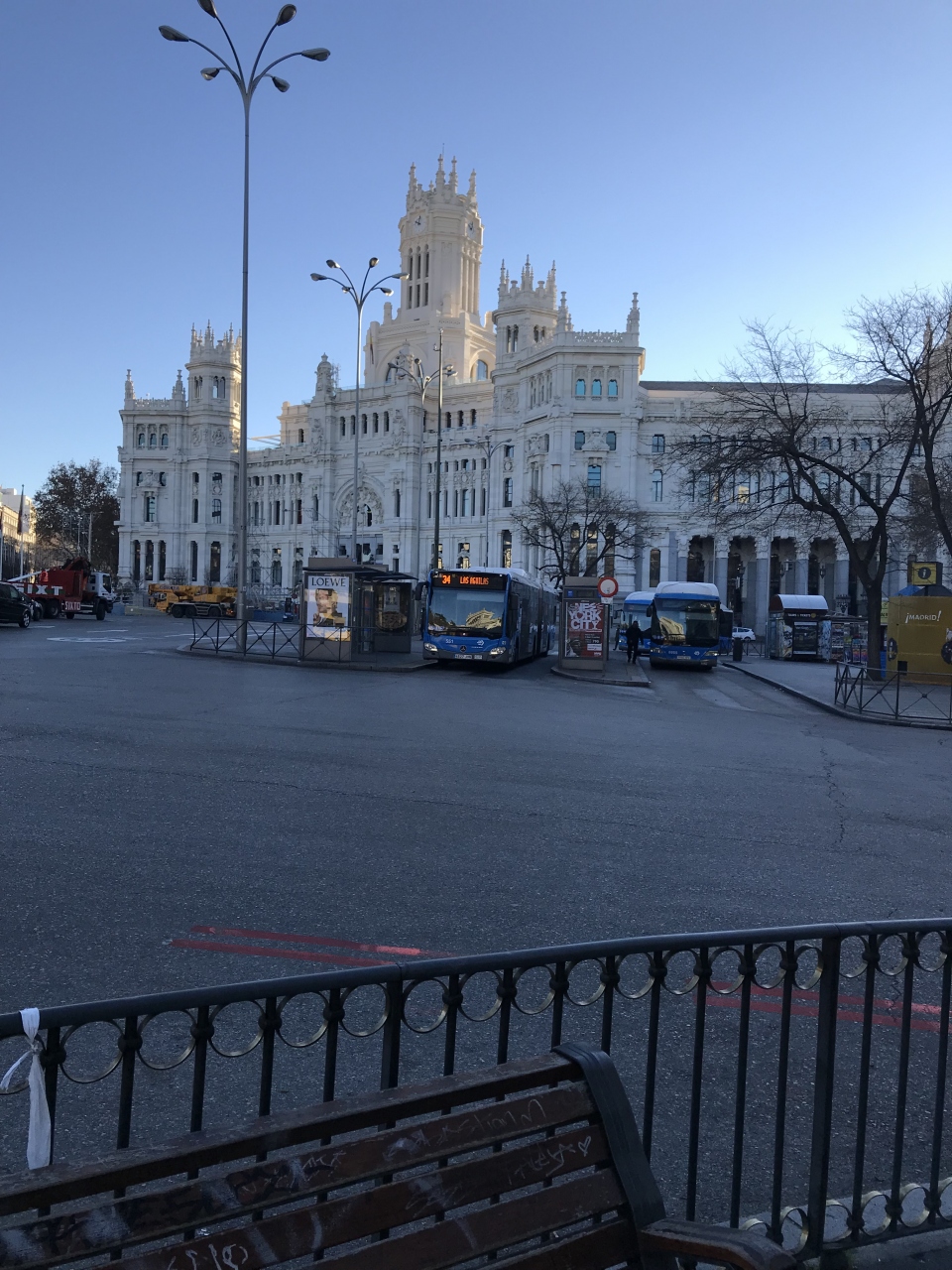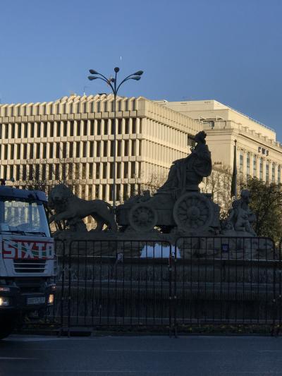 シベーレス広場の中央にある噴水です。噴水自体は、あまり勢いよく出るという感じでは無く、どちらかと言うと中央の像に目がいきます。像は、ギリシャ神話のキュペレーという女神と2頭のライオンの像で、この女神のスペイン語読み「シベーレス」が広場の由来となったのだそうです。