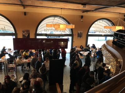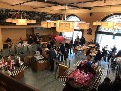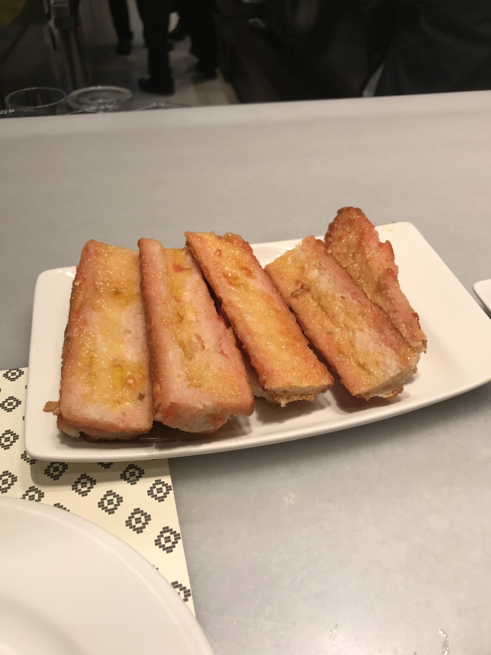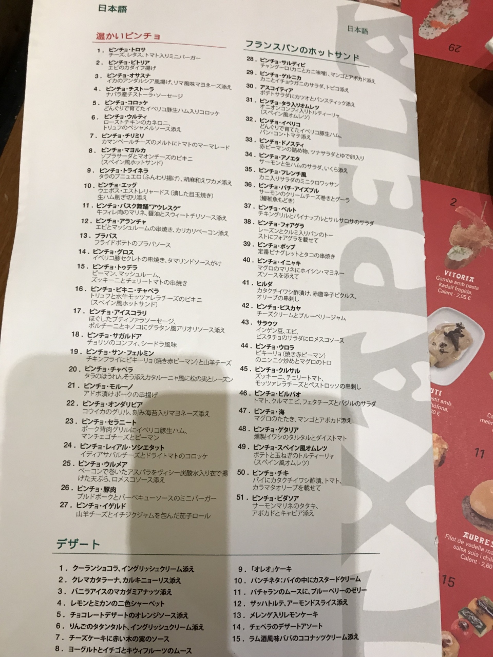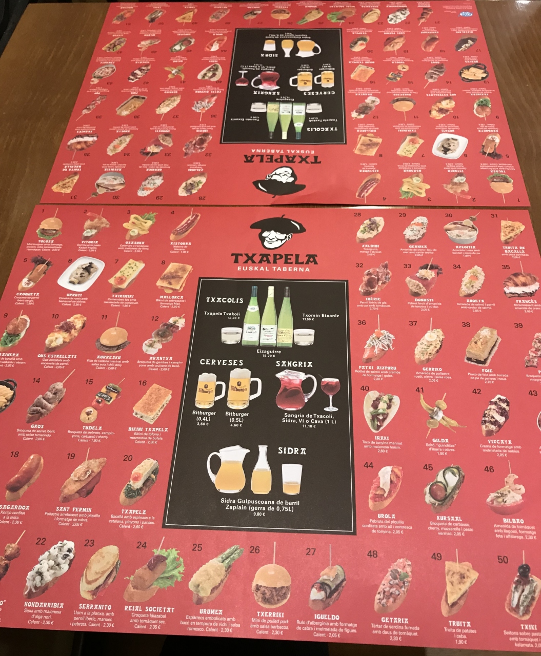 カサバトリョの近くです。人気タパス店「セルベセリア カタラナ」の姉妹店で、メニューも一緒です。こちらは比較的空いているので、お勧めです。19時頃に行ったところ、待つことなく入れました。メニューは、カタルーニャ語、スペイン語、英語の3種類でした。メニューは文字のみでイメージしづらいです。カウンター席だったので、食べたい料理も指さしで注文できて、注文しやすかったです。サングリアも美味しかったです。