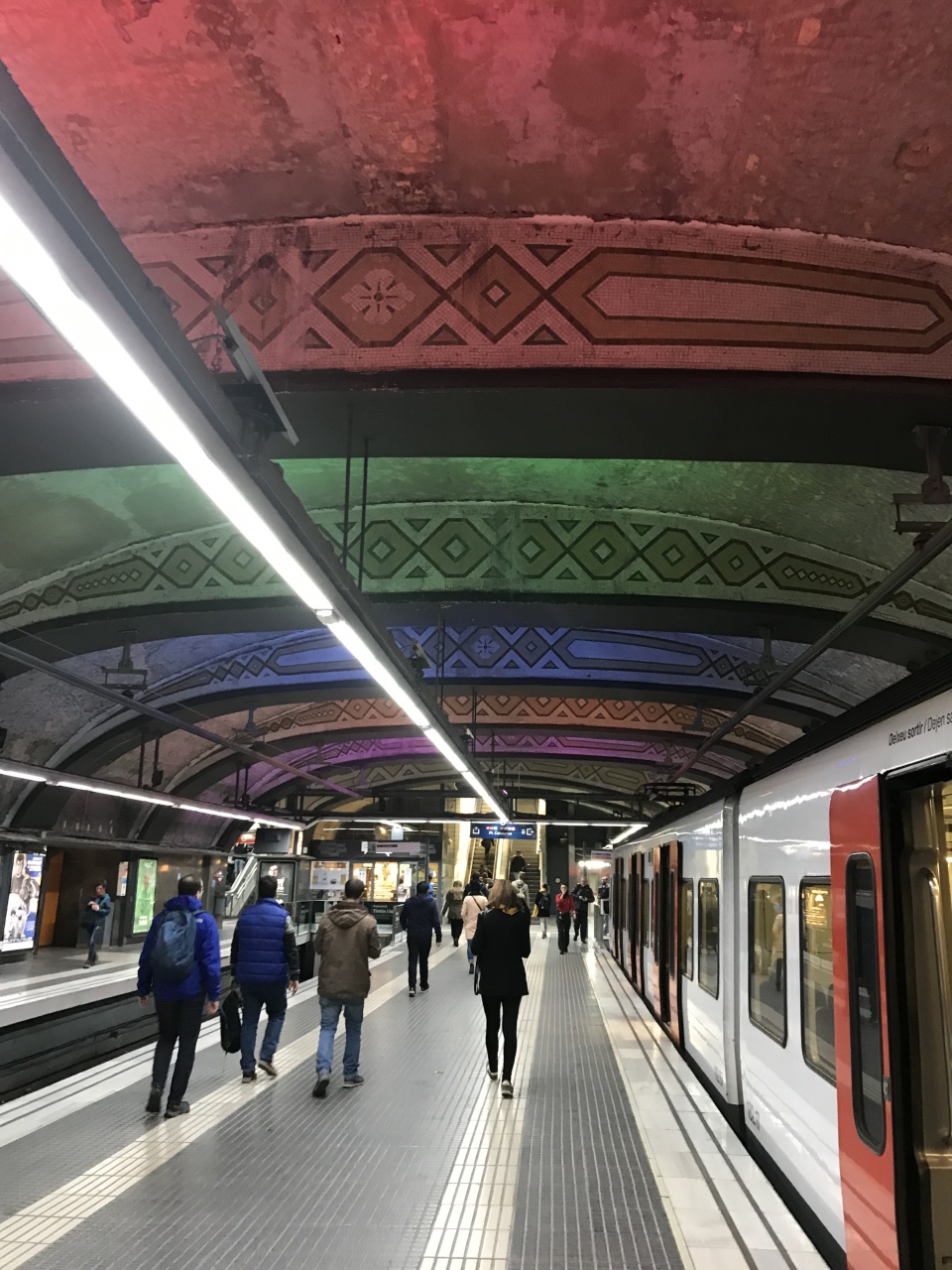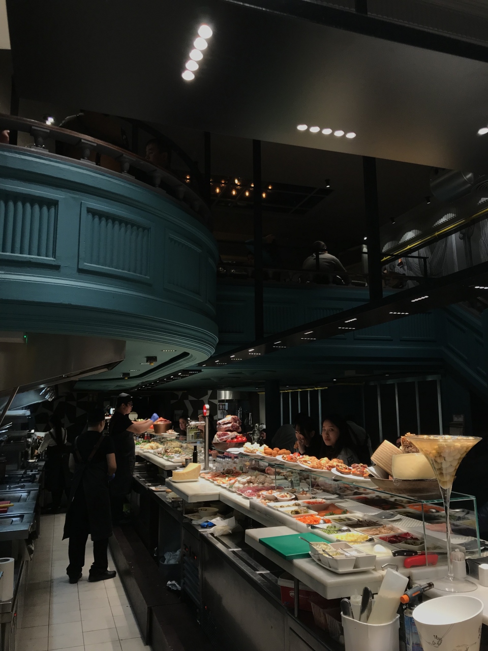 カタルーニャ広場に面しています。最上階にはフードコートがあって、パエリアのほか寿司までありました。食べたい料理をお皿に取り、最後にまとめて会計するシステムです。