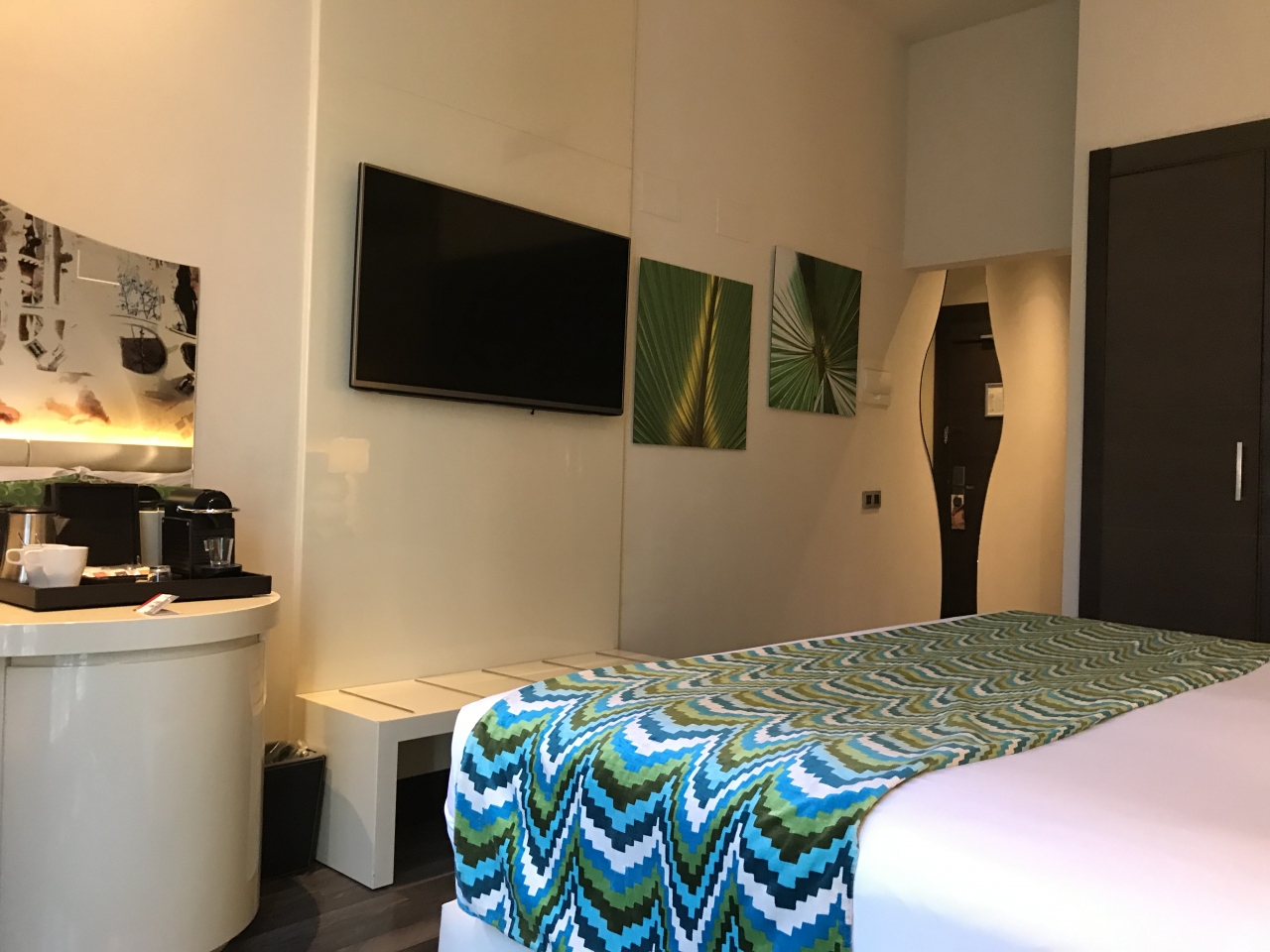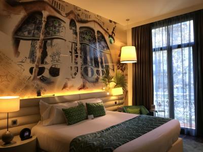 カタルーニャ広場から徒歩10分弱でした。大通り沿いにあるので、わかりやすかったです。部屋は新しく清潔で綺麗で、スタイリッシュなイメージのホテルでした。