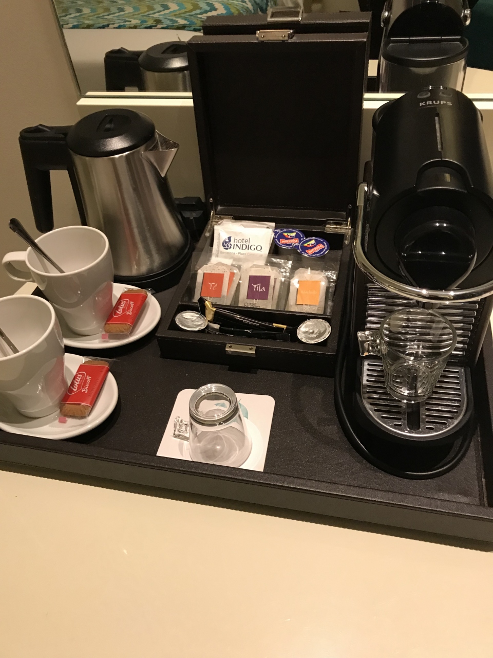 部屋にはコーヒーメーカーやポットがあり温かい飲み物がいただけます。カタルーニャ広場の近くと立地は良く、カサバトリョ、カサミラは徒歩圏内でした。- 旅行時期