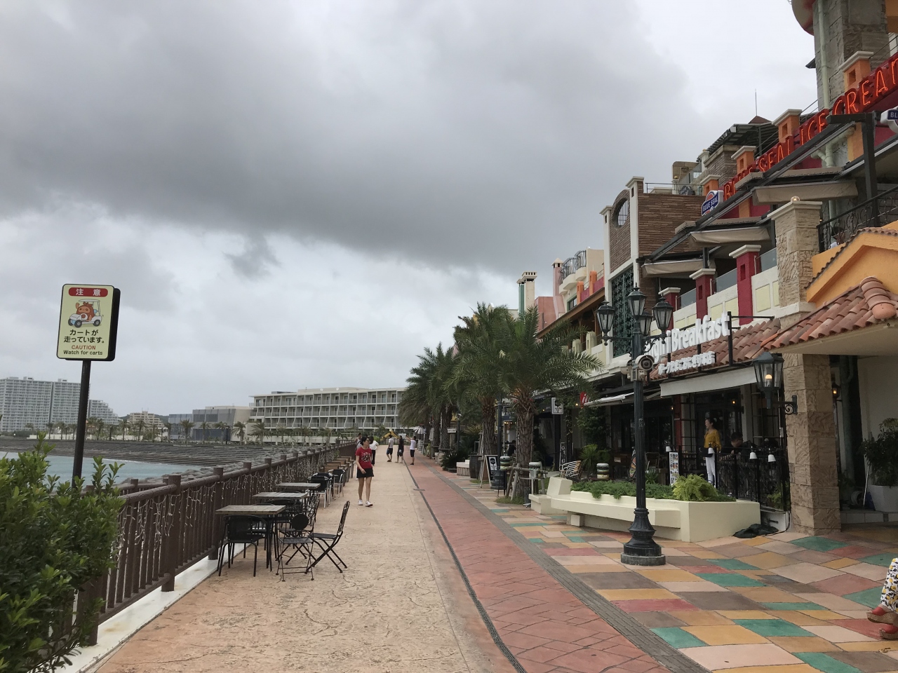 ホテルやレストラン、ショップなどが集まる施設で、「アメリカンビレッジ」という名前のとおり、アメリカっぽい雰囲気でした。かなり広い施設で人工のビーチもあって、海に入ることもできます。観覧車もランドマーク的に目立っていました。