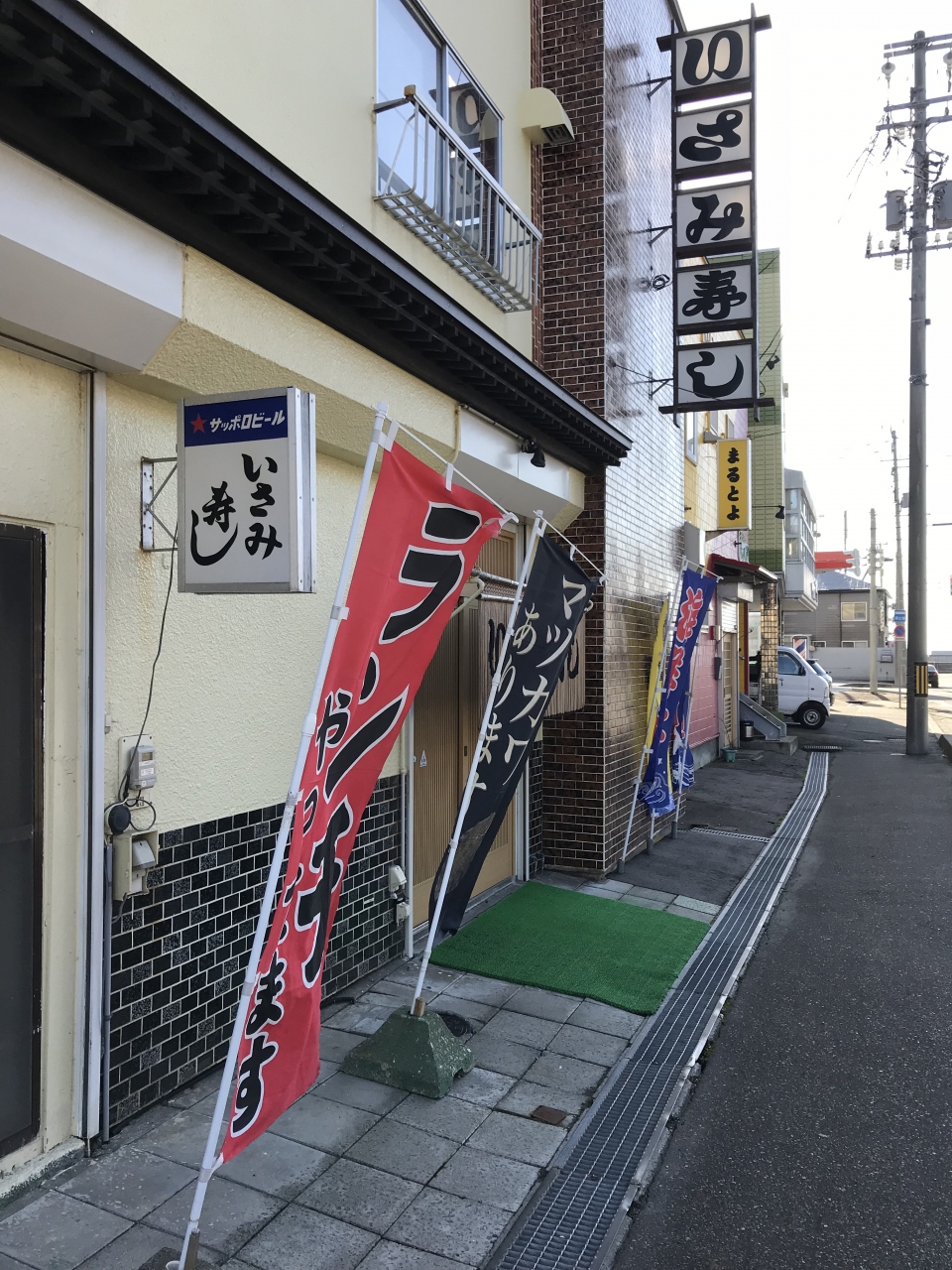 襟裳岬へ行った際に立ち寄りました。えりも町の街中にある寿司店です。襟裳岬から車で15分くらいでした。ランチメニュー(1,000円)もあって、チラシと握り寿司の2種類がありました。うどんか味噌汁がセットで付いてきます。