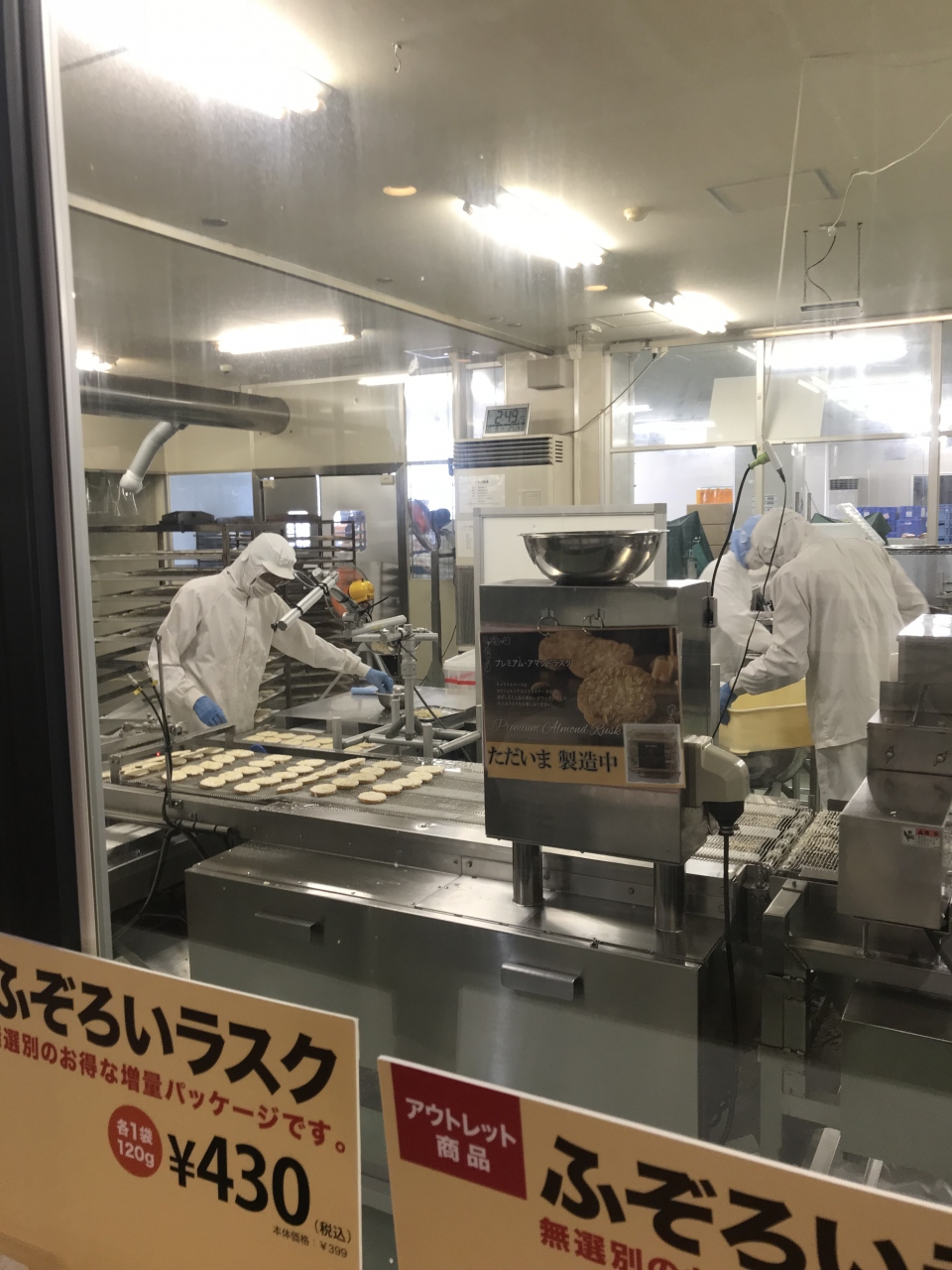 ショップも併設されている工場です。工場店ならではの商品として、ふぞろいラスクなどの訳あり商品がありました。