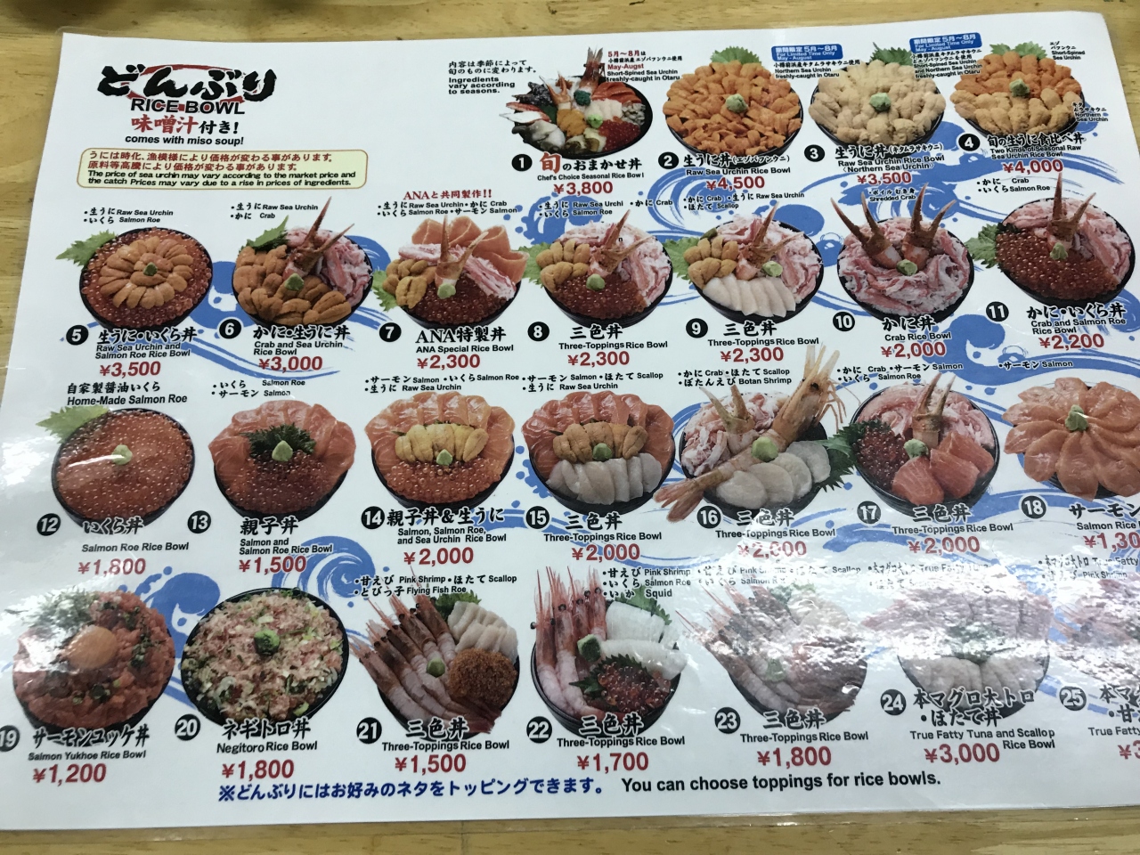 ANA特製丼(2,300円)と三色丼(2,000円)を注文しました。丼は小さめでした。コスパが良いと宣伝されていましたが、さほどお得な印象は無く、観光地価格だと感じました。