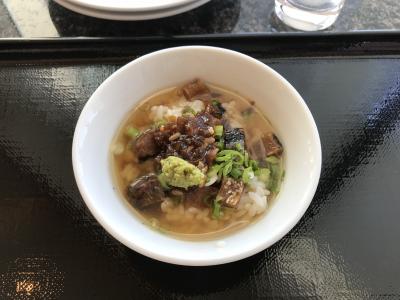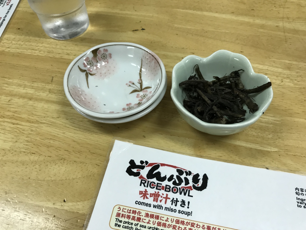 イカスミのサキイカとホタテの味噌汁がついてきます。- 旅行時期