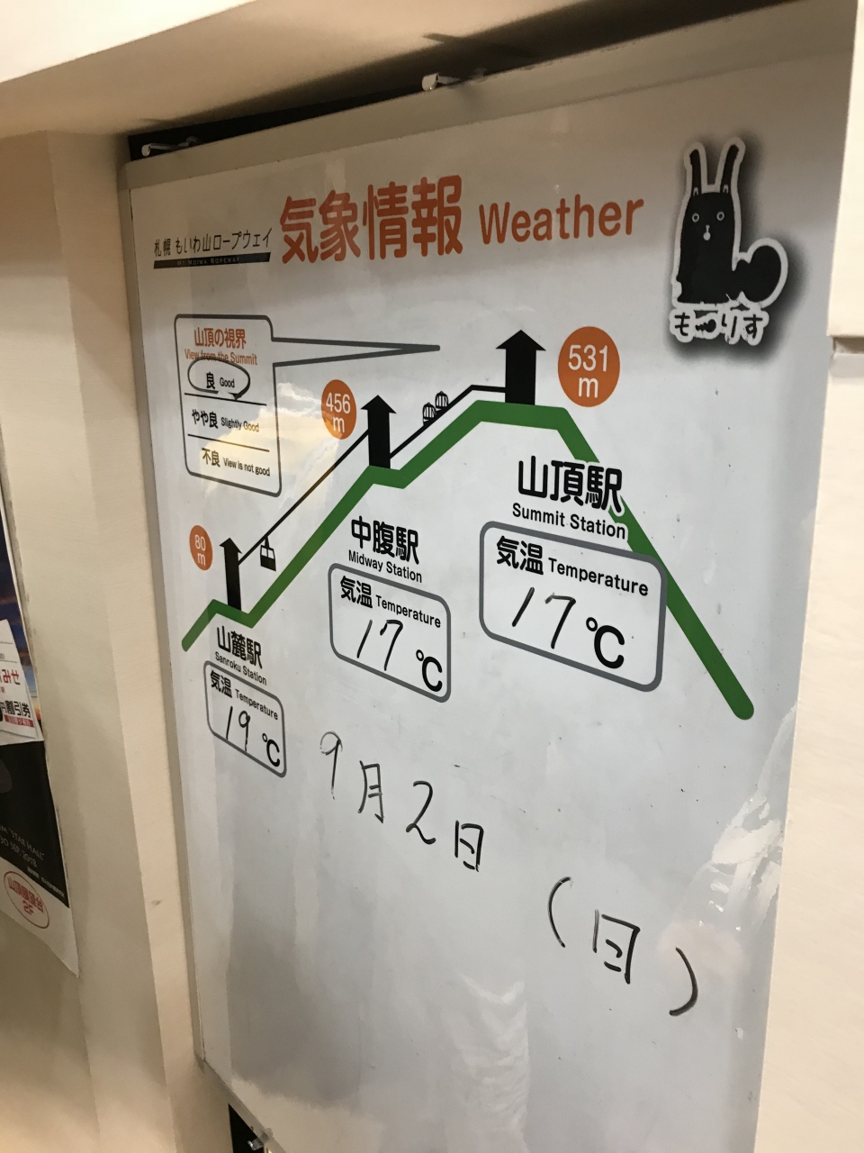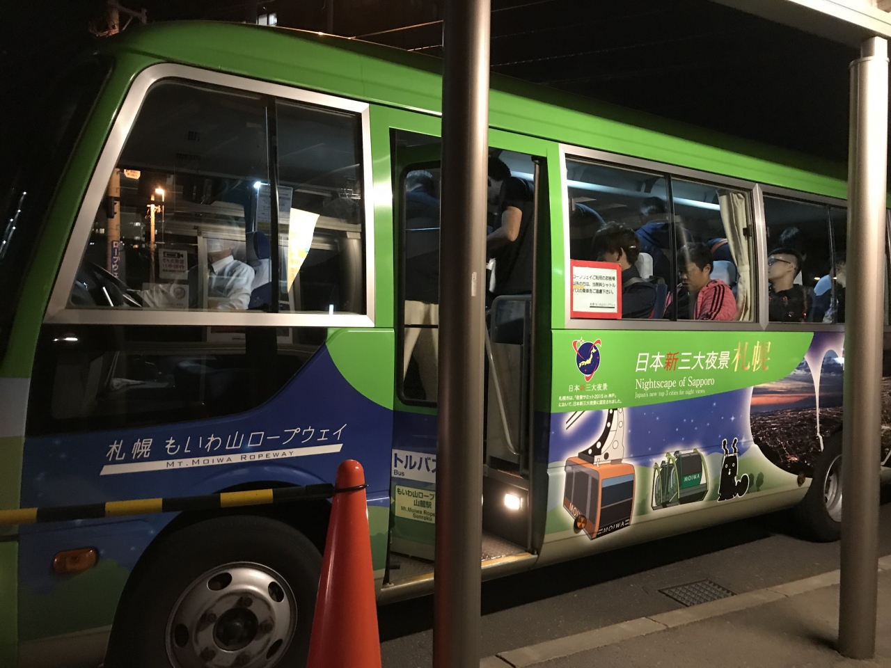 「ロープウェイ入口」の電停から徒歩1分くらいの所に、もいわ山麓駅までの無料シャトルバス乗り場があります。15分間隔で出ています。スタッフの方の話によると、この日は特に人が多かったそうで、混雑していました。