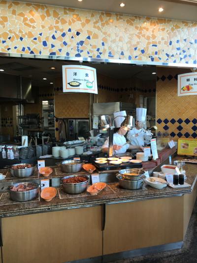 8:00過ぎに行ったところ、団体客もおらずゆったりと利用できました。メニューは、北海道ご当地メニューも多く並んで、豊富な印象でした。ライブキッチンでは、北海道のご当地麺料理が日替わりで提供されていて、この日は北見塩焼きそばでした。