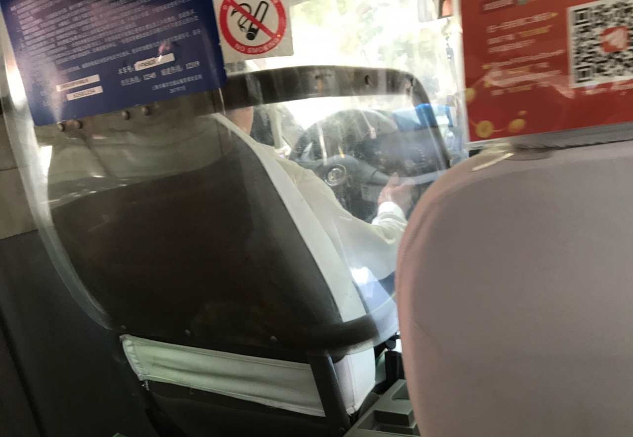 運転席は、プラスチックの板で囲まれていて、防犯対策もしっかりされている印象でした。運賃も安く、支払いに安心感もあり、気軽に利用できる交通手段だと思いました。