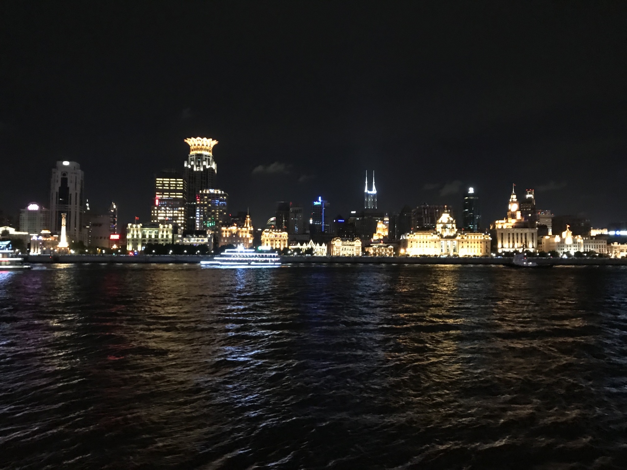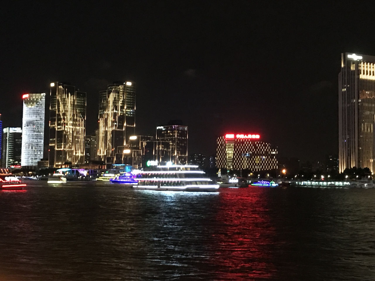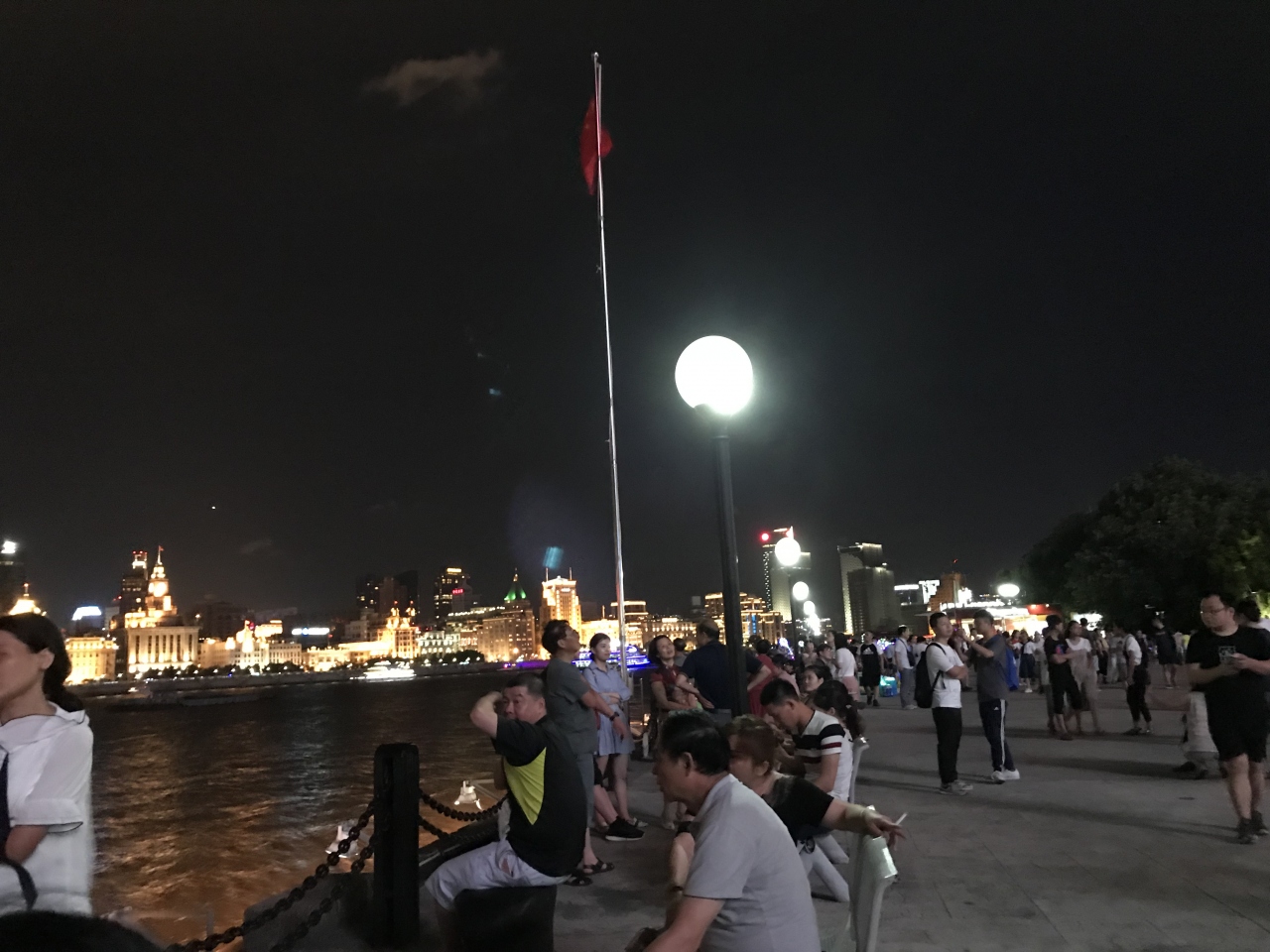 黄浦江沿いに広がる通りで、対岸の外灘を一望できる絶好のスポットでした。特に夜は、ライトアップが綺麗でした。