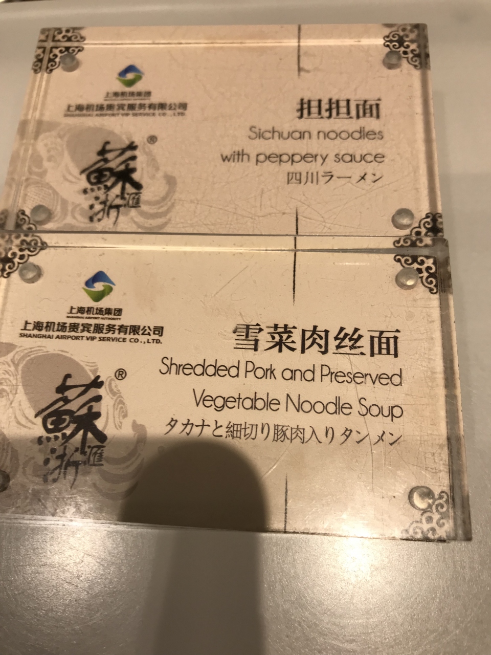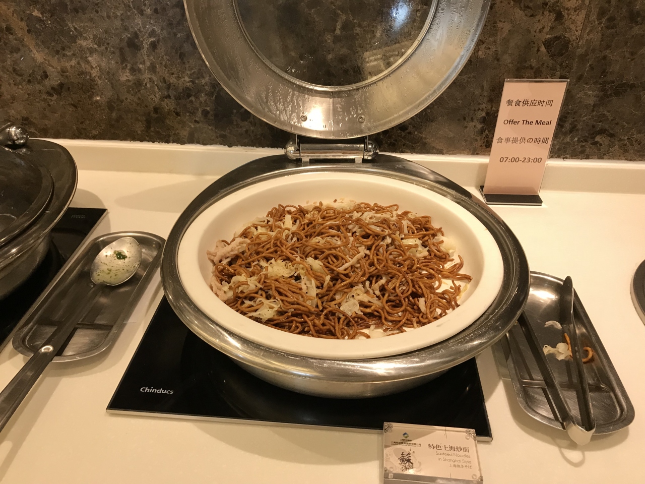 ラウンジ内では、ミシュラン1つ星を獲得している上海の有名レストラン「蘇浙匯」の料理がいただけます。メニューは点心と麺料理でした。