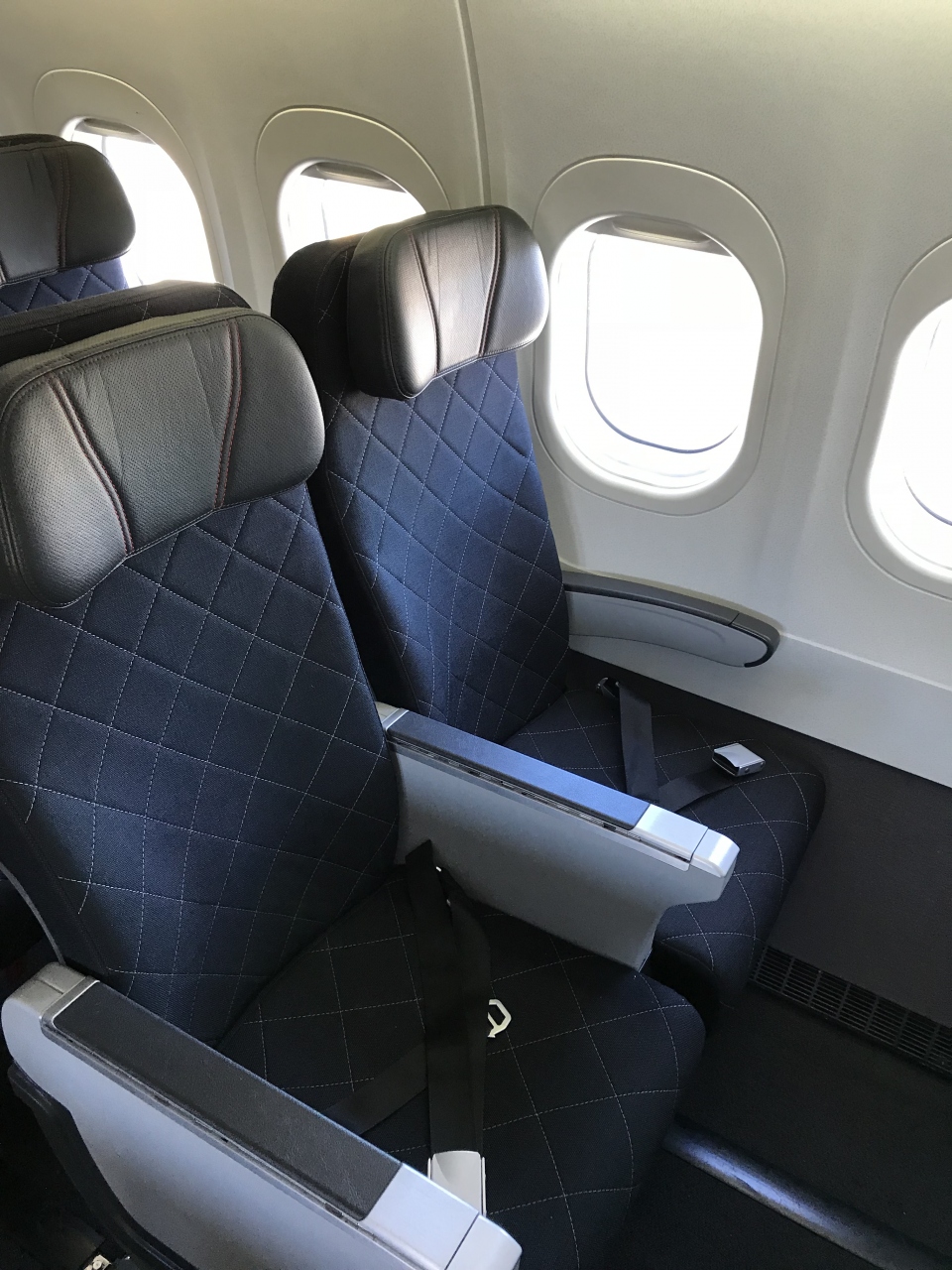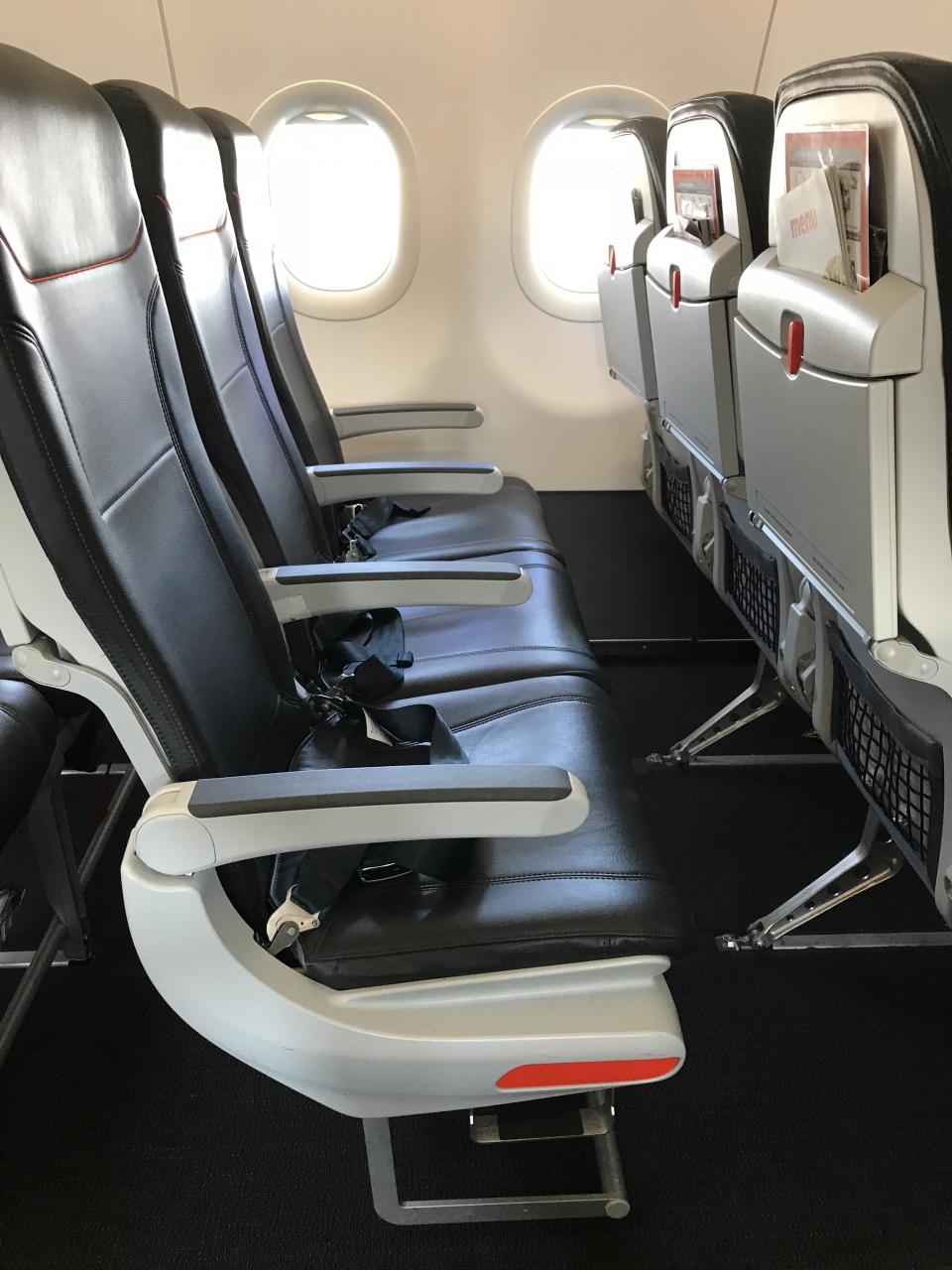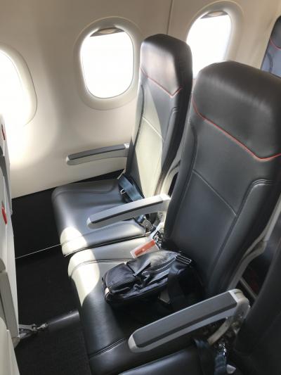 シドニーからハミルトン島まで利用しました。カンタス航空とのコードシェア便でした。座席は3-3列でした。前の席との間隔は、やはり狭く感じました。