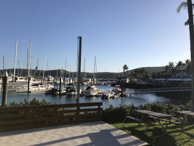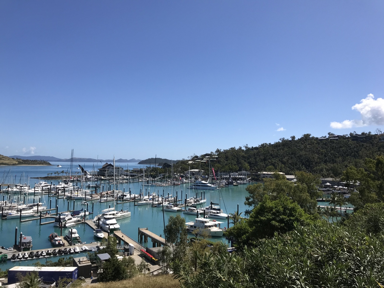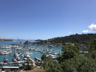 ハミルトン島で一番賑やかなエリアで、レストランやカフェが並んでいるほか、スーパーや薬局などもありました。マリーナには、たくさんヨットが停泊しているので、青い空に映えて、マリーナ自体も絵になる場所でした。少し高台にある展望台からは、マリーナが見下ろせるので、こちらに立ち寄ってマリーナを見下ろすのもお勧めです。