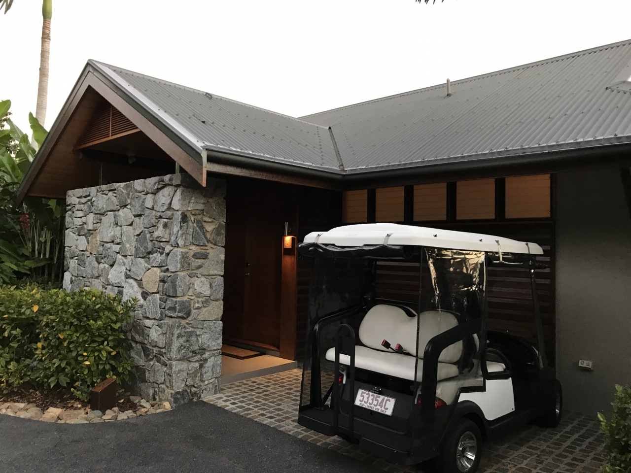 空港からホテルまでは、ホテルの送迎車を利用しましたが、バギーでも移動できる距離でした。