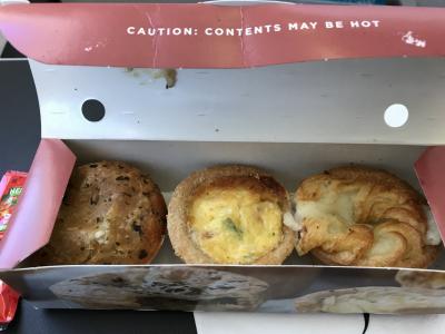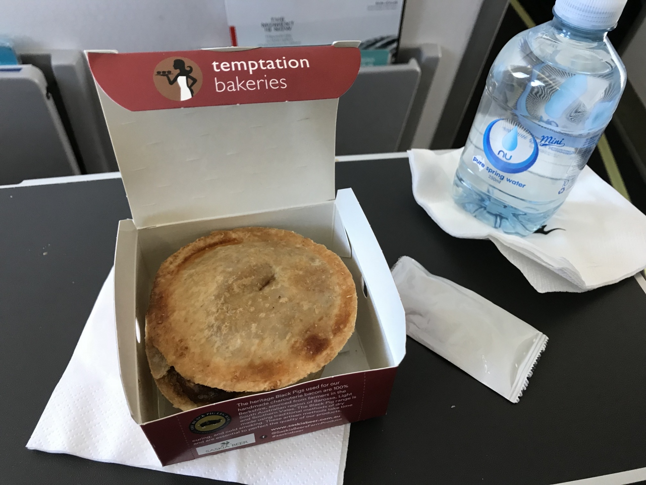 約2時間30分の搭乗でしたが、機内では、ドリンクサービスのほか軽食のサービスもありました。オーストラリア名物のミートパイがいただけました。
