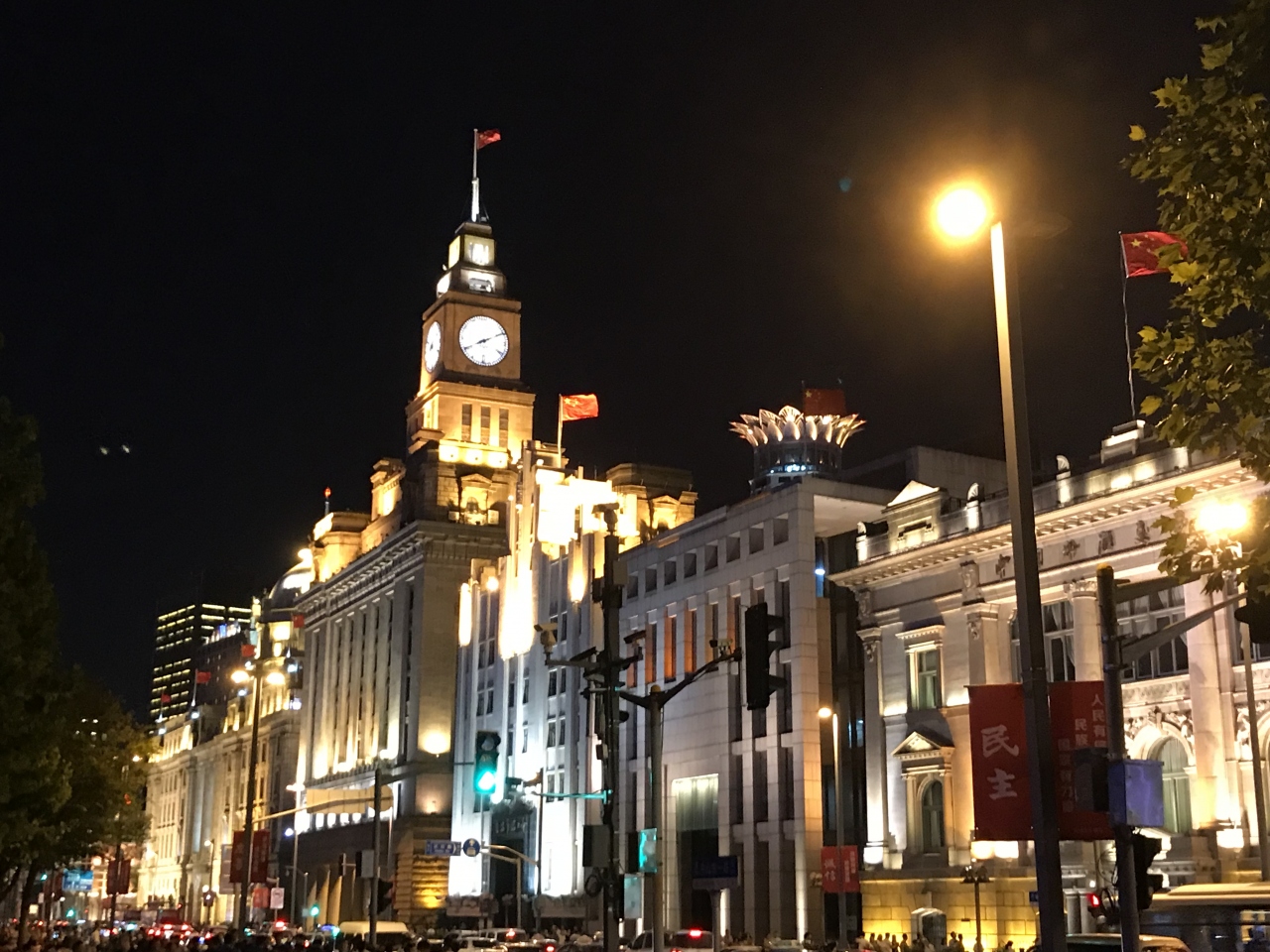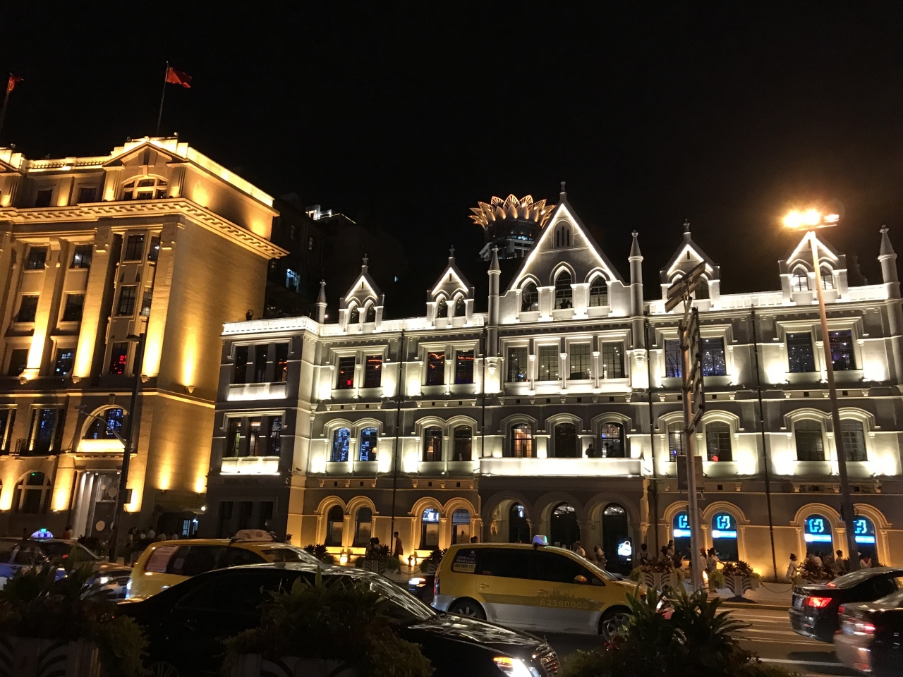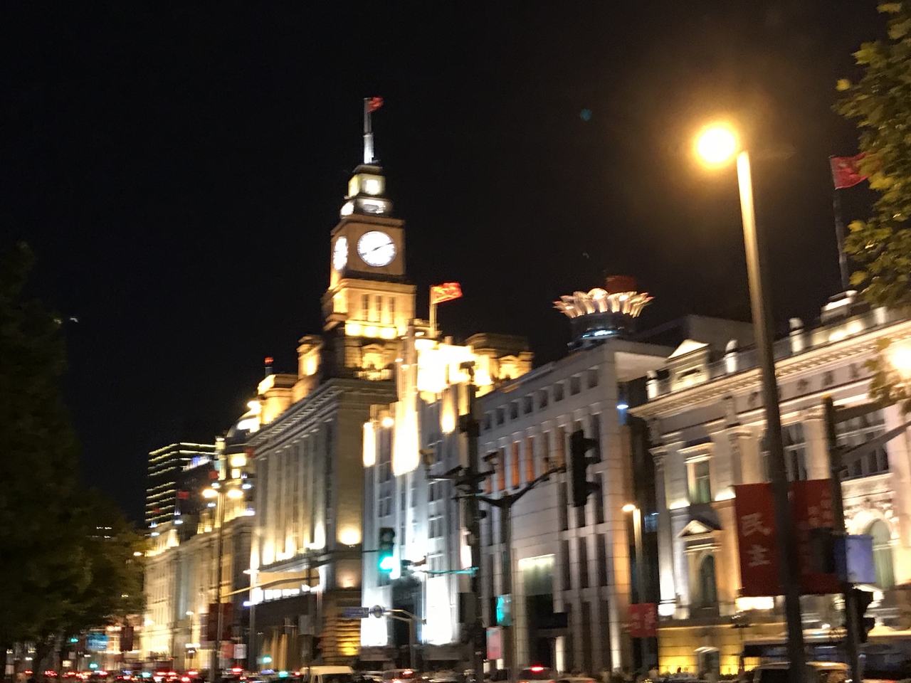 時計台が目印の建物で、外灘のシンボルとも言える建物だと思いました。ライトアップされた姿も、立ち並ぶ建物の中で、とりわけ幻想的でした。