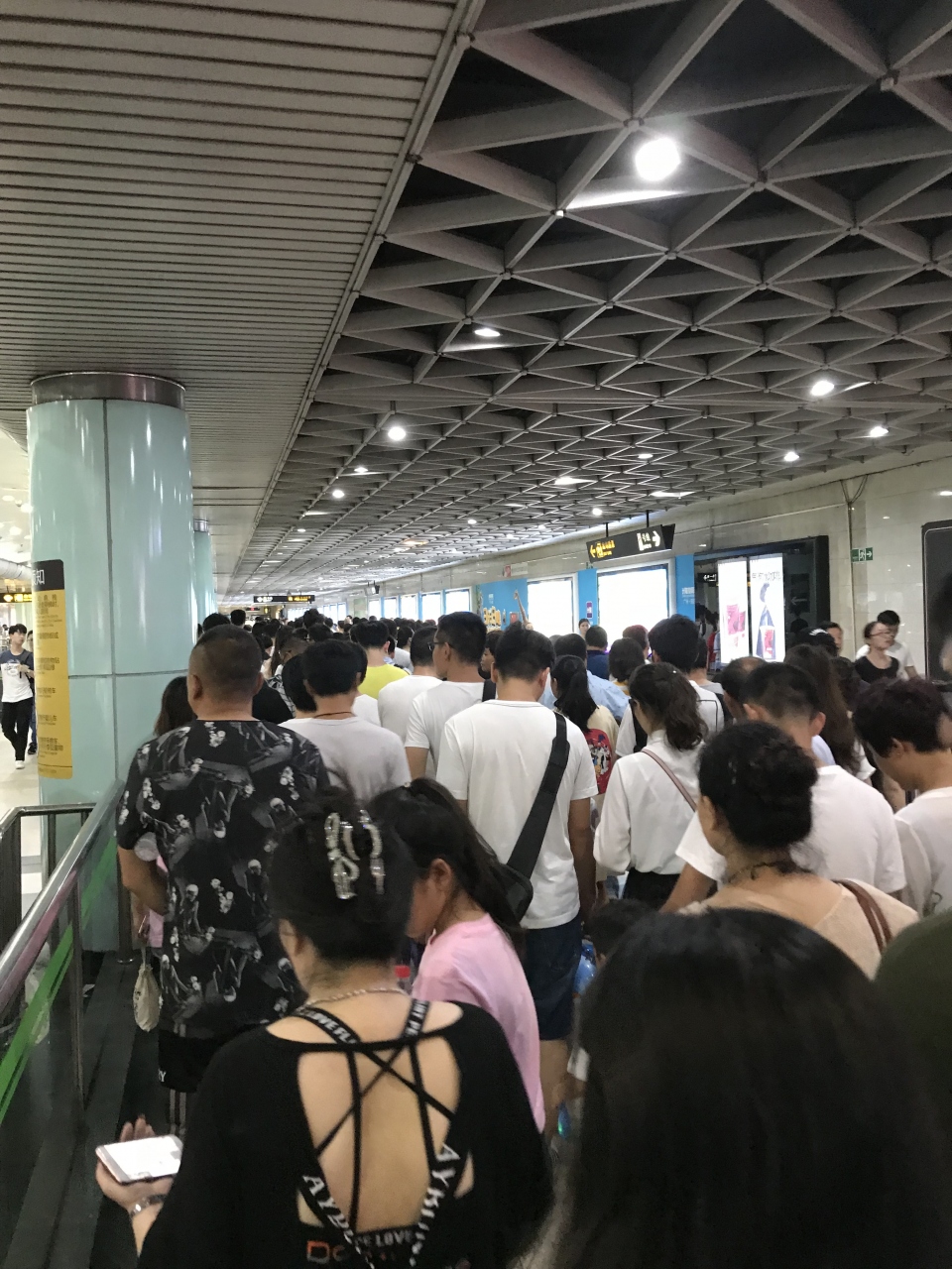 外灘へアクセスする際の最寄り駅です。夜の時間帯は大変混み合っており、券売機にも行列ができていました。