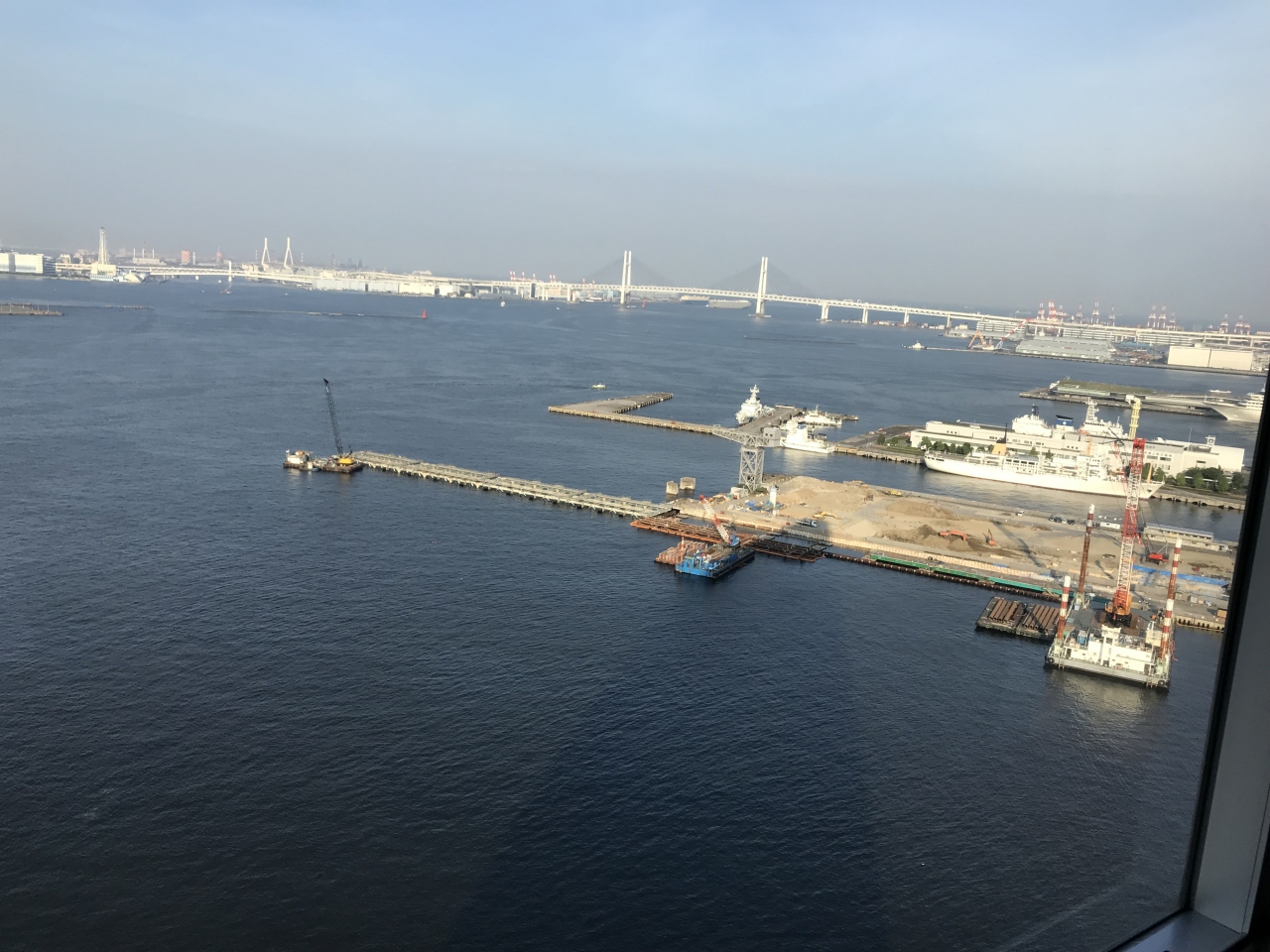 横浜ベイブリッジや横浜港を一望できる、開放感抜群の景色を楽しめました。