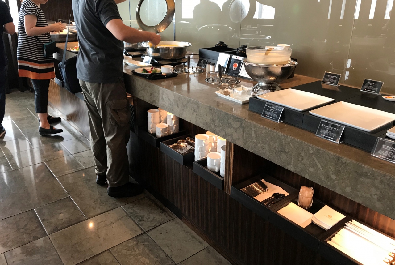 1階にあるラウンジは、あまり広くないので、特に夜は混雑しました。料理も並べられるとすぐに無くなってしまう感じでした。