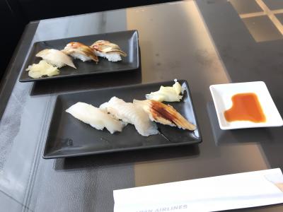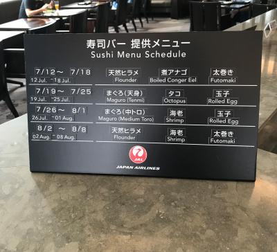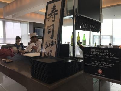 羽田空港のファーストクラスラウンジとの大きな違いは、寿司バーがあることです。寿司職人さんが、目の前で握ってくれます。