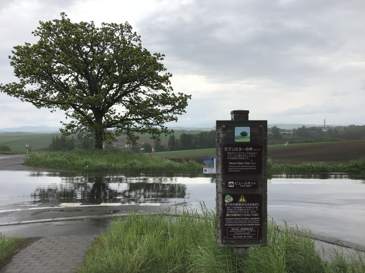 一瞬、この木で良いのか確信が持てませんでしたが、木の前に説明板があったので、セブンスターの木だとわかりました。