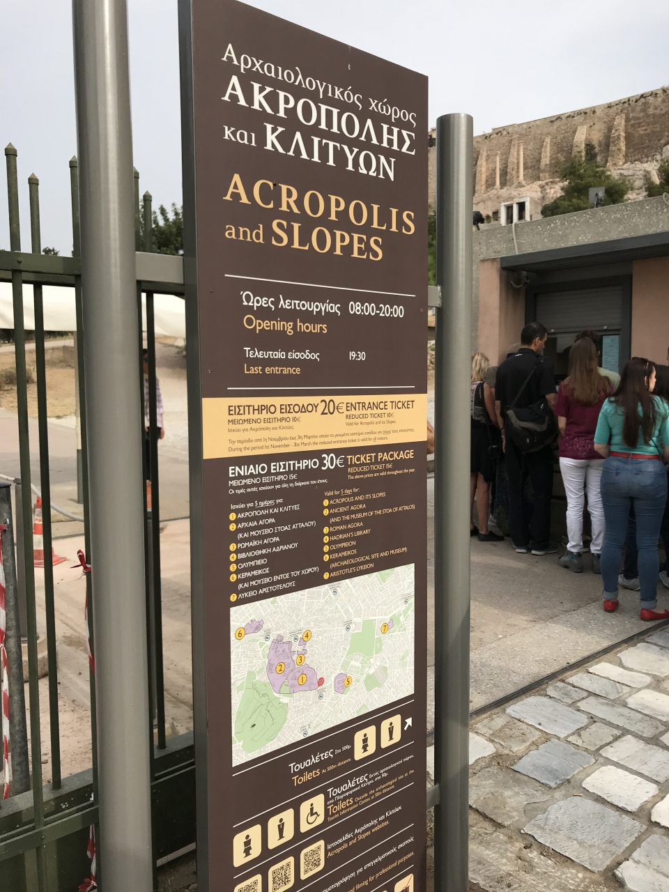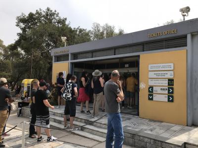 アクロポリス単独のチケット(20ユーロ)を購入しました。他に、古代アゴラなどとの共通チケット(30ユーロ)もあります。クレジットカードも利用できました。