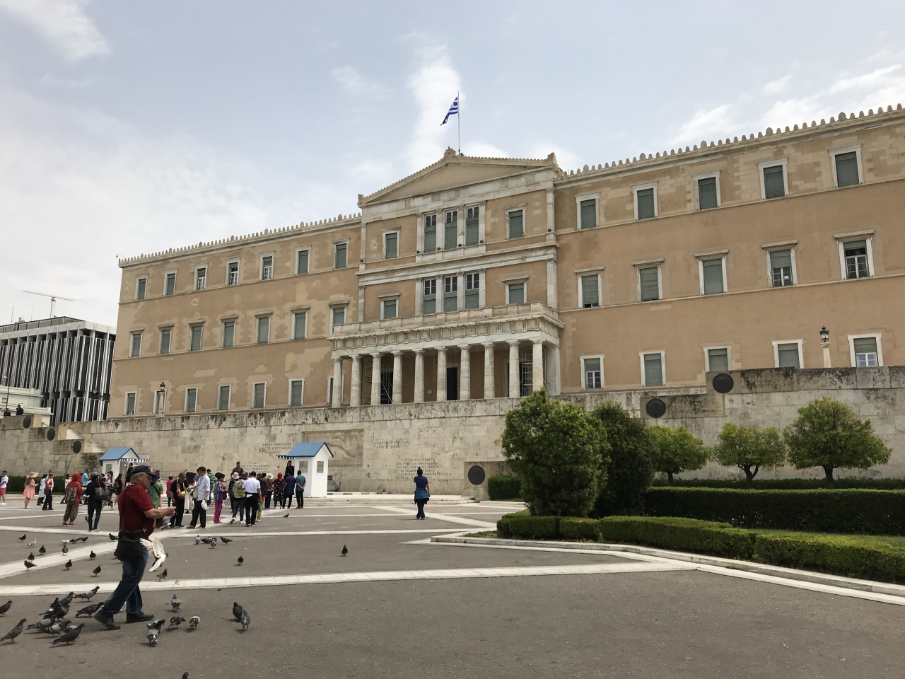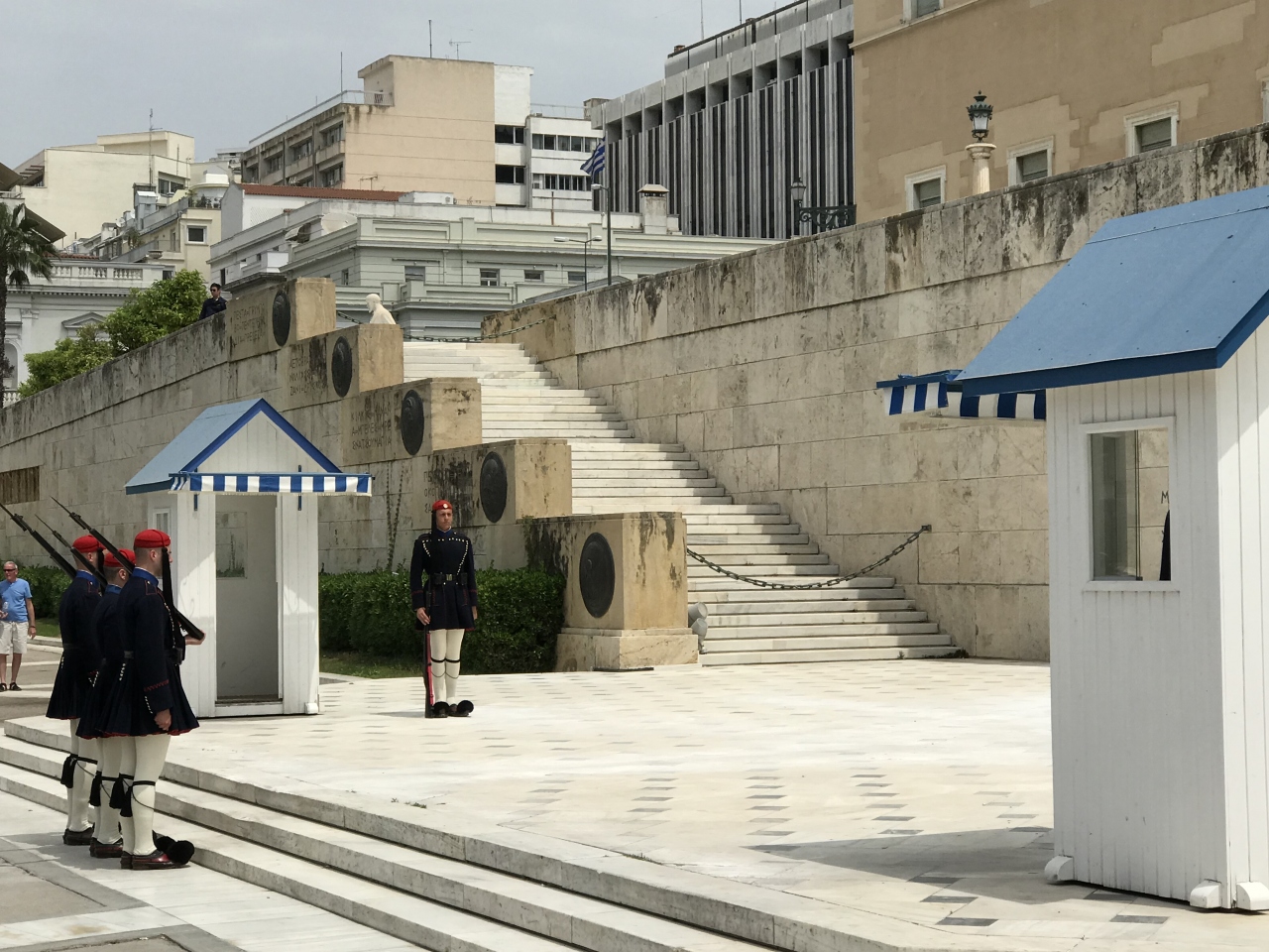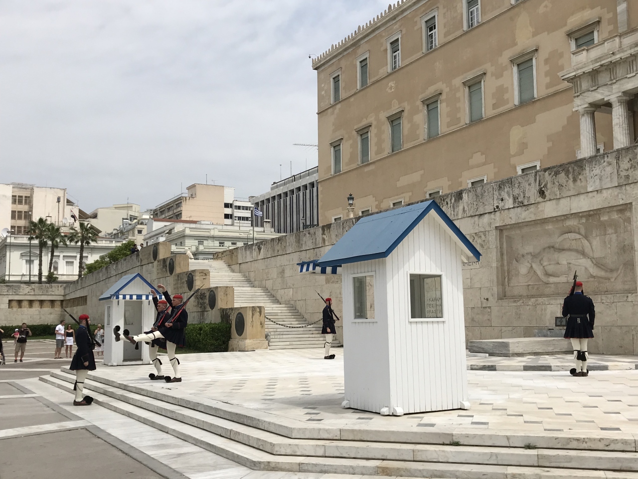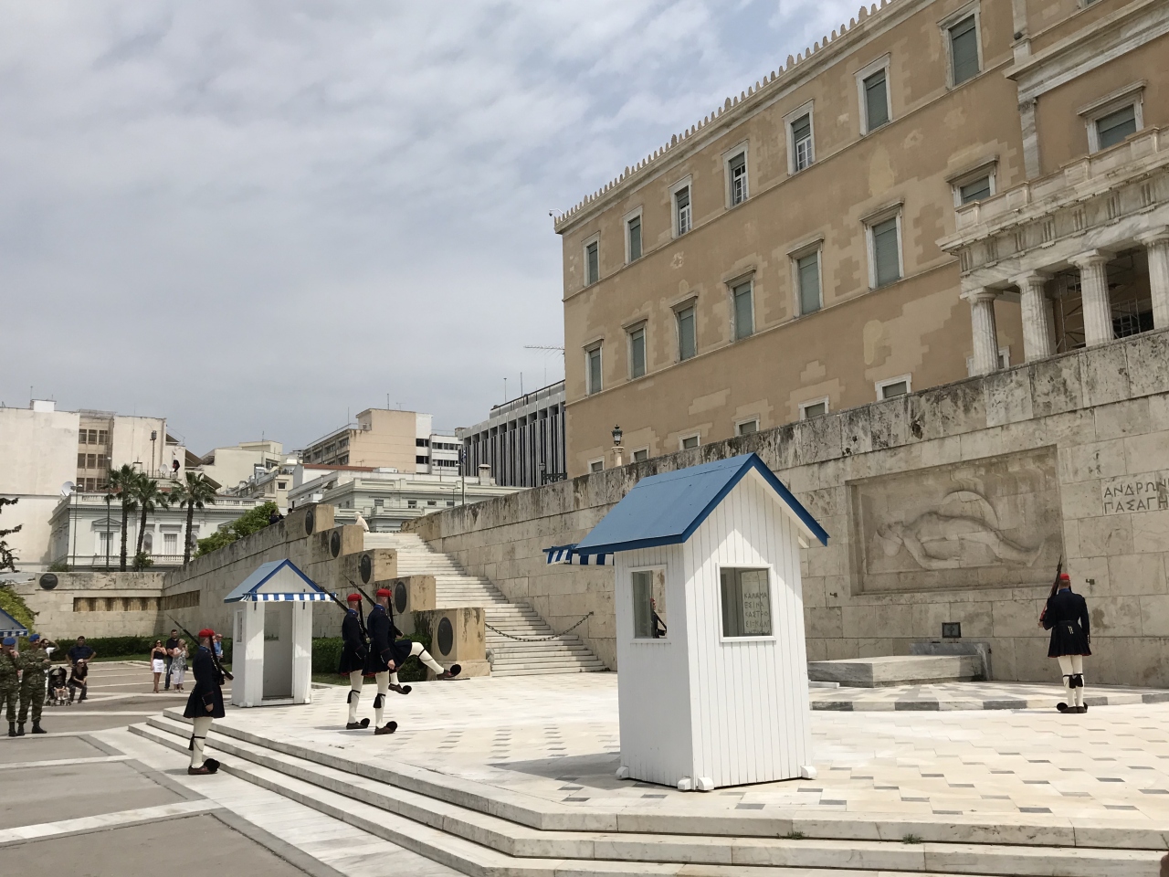 国会議事堂の前にあり、衛兵が警備しています。衛兵交代は、アテネ観光の目玉の一つだと思うのでお勧めです。衛兵は、民族衣装を着ていて、独特な動きも見せてくれるので、見ごたえがありました。