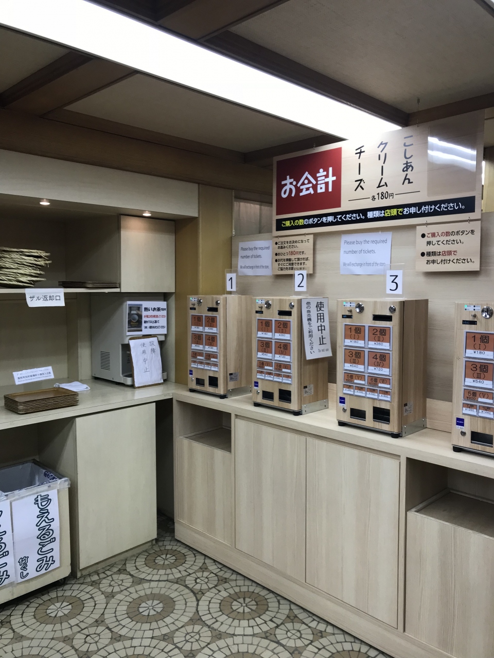 まず最初に、自動券売機でチケットを購入して、店頭で商品と引き換えるシステムでした。
