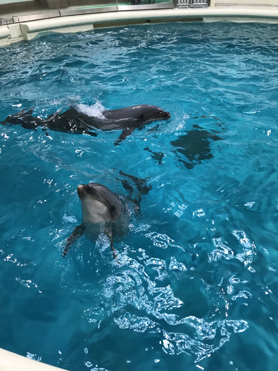 イルカのショーは、時間が合わなかったので、見なかったのですが、ショーの時間以外でもイルカを間近で見られました。