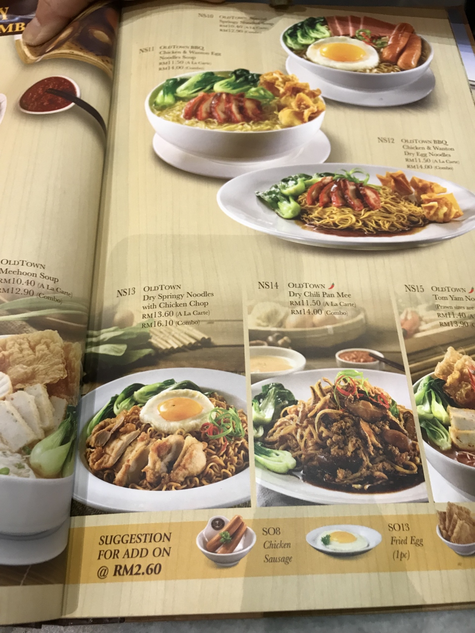 名物のホワイトコーヒーのほか、食事メニューもありました。