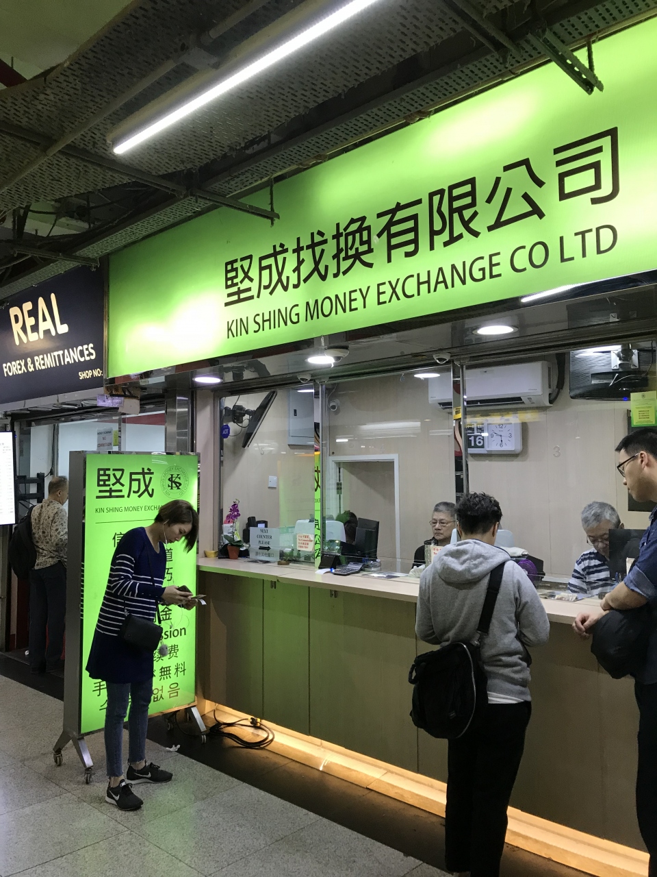 1階入口付近には、複数の両替店が並んでいるので、店頭に掲示されているレートや手数料を確認して、適当な店を選んで両替しました。