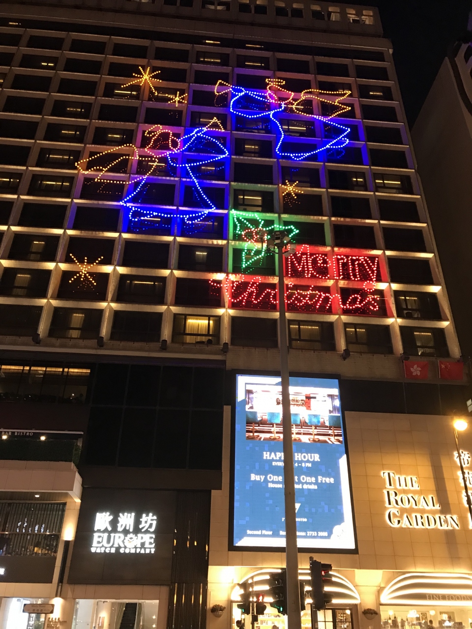 この界隈のビルの壁面に、イルミネーションが施されているもので、どれも大きなビルなので、かなり迫力があり見ごたえがあるものでした。- 旅行時期