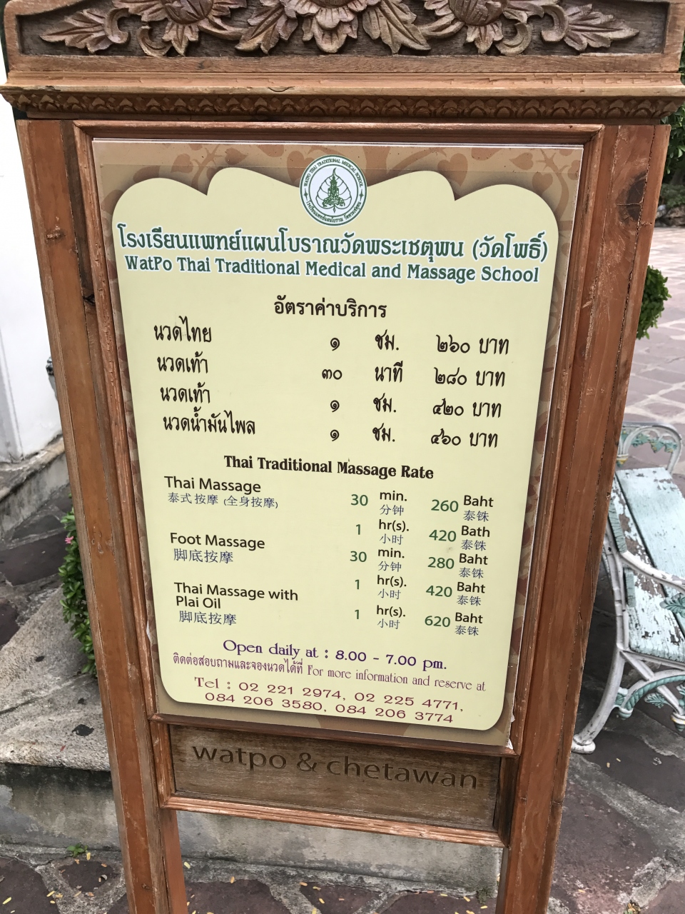タイ古式マッサージは、30分260バーツ、フットマッサージは、30分280バーツでした。- 旅行時期