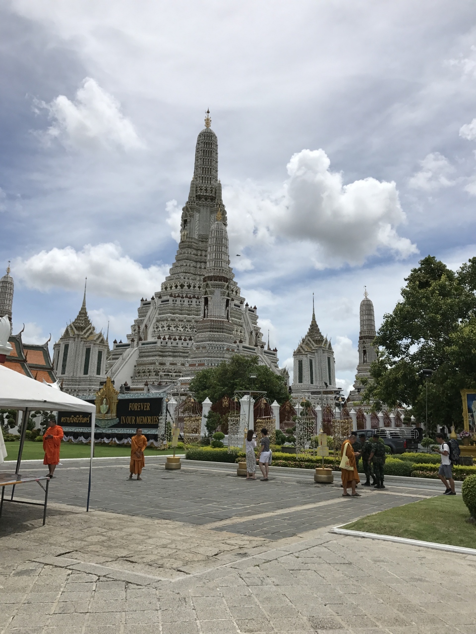 タイの寺院というと、金色のイメージがありますが、白を基調としたつくりで、細かい装飾が見事でした。