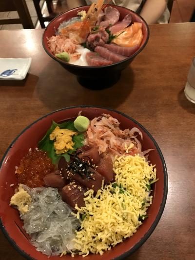 そんな中、やはり、新鮮な魚介が食べたいと思い魚河岸わいわい丼と魚河岸丸天丼を注文しました。