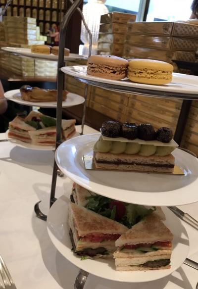 3段の場合、1番下の段がサンドイッチ、真ん中の段はケーキか焼き菓子を選択、一番上がマカロンでした。