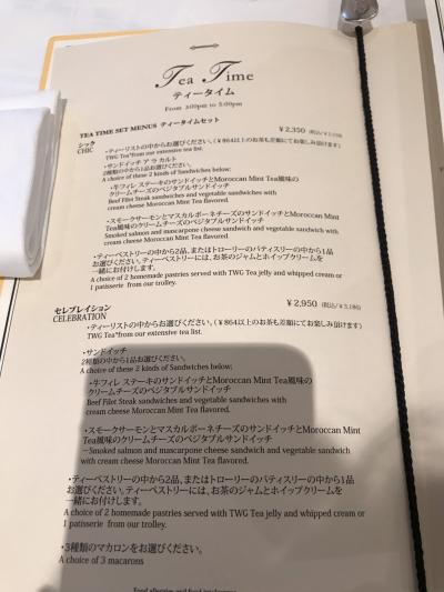 アフタヌーンティーのメニューは2つあって、ワゴンが2段か3段かで値段が違いました。