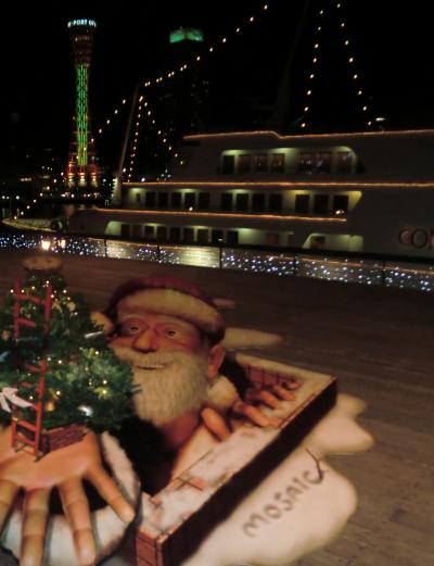 同じくライトアップされたモザイクの大観覧車を背景にすると,絵葉書のような風景でした。- 旅行時期