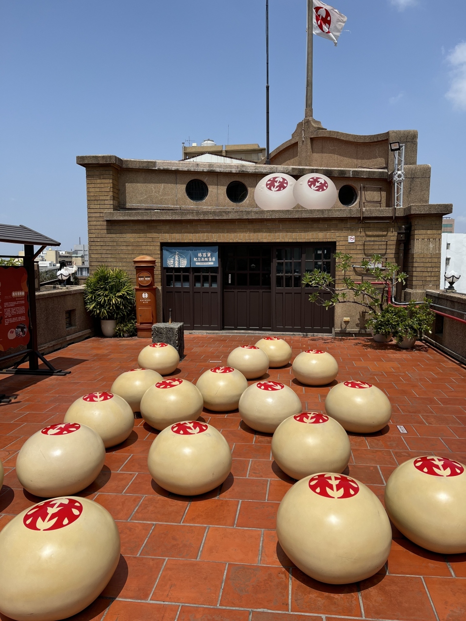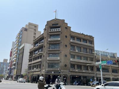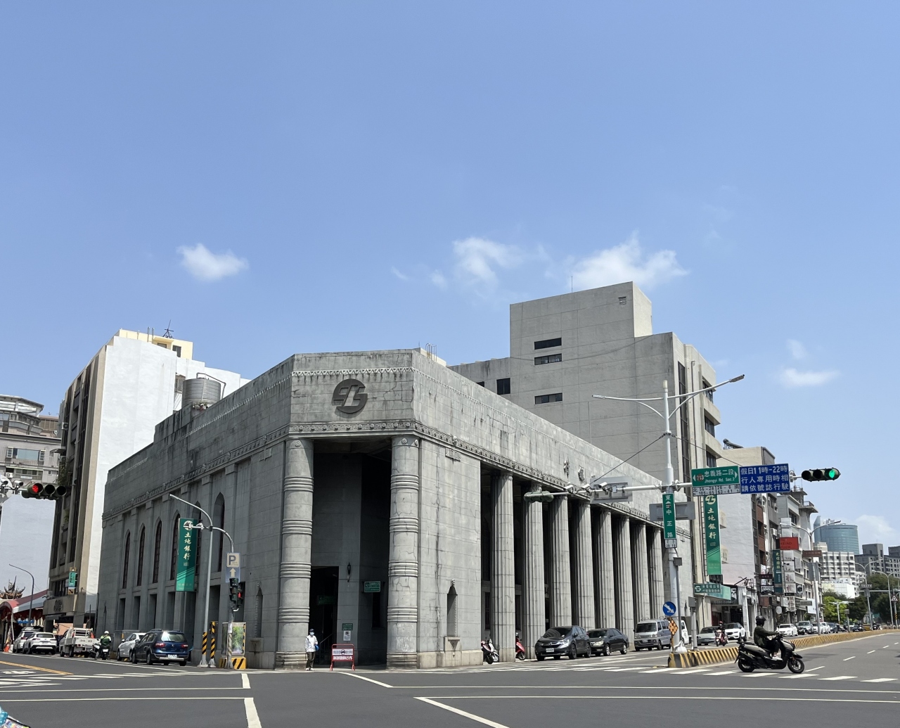 中正路と忠義路という大通りの交差点に建っています。日本統治時代に建てられた歴史的建造物で、現在は「台湾土地銀行」として利用されています。列柱が見事で、神殿のように立派な建物でした。また、よく見ると恵比寿様の顔が装飾されていて面白いです。交差点を挟んで向かいには、林百貨があります。