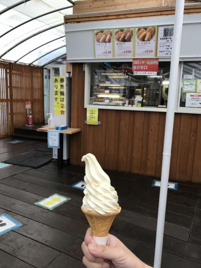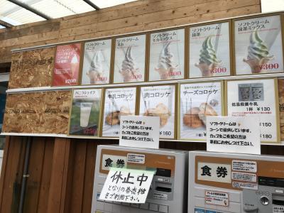 まず券売機でチケットを購入してから商品と引き換えます。ソフトクリーム以外にも、牛乳やコロッケが販売されていました。ハーフサイズもあるので、気軽に色々な味を試せて良いと思います。- 旅行時期