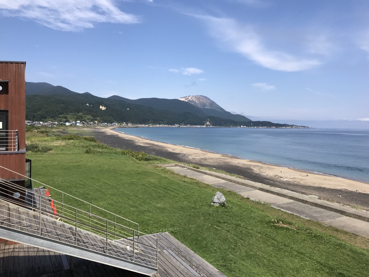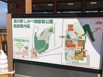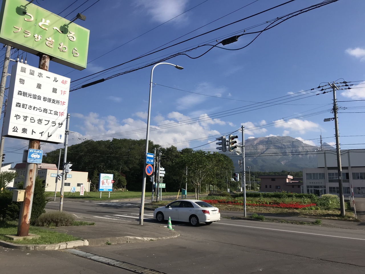 特産のブルーベリーや帆立を使ったお土産が置かれていました。4階に展望ホールがありますが、エレベーターは無く、階段だけだったので、今回は諦めました。道の駅の前からは、噴火湾は見えませんが、駒ヶ岳が綺麗に見えます。
