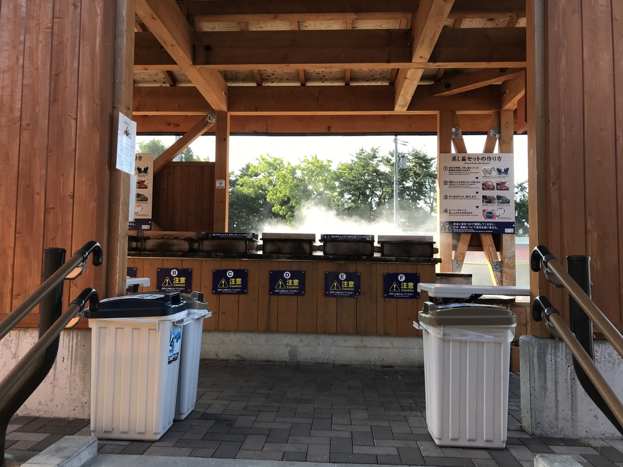 道の駅の名前にもなっている間歇泉が、目玉となっています。間歇泉は土産物が販売されている建物内にあり、有料で300円でした。温泉を利用した蒸し料理も目玉の一つで、食材を購入して、自分で蒸して食べることができます。