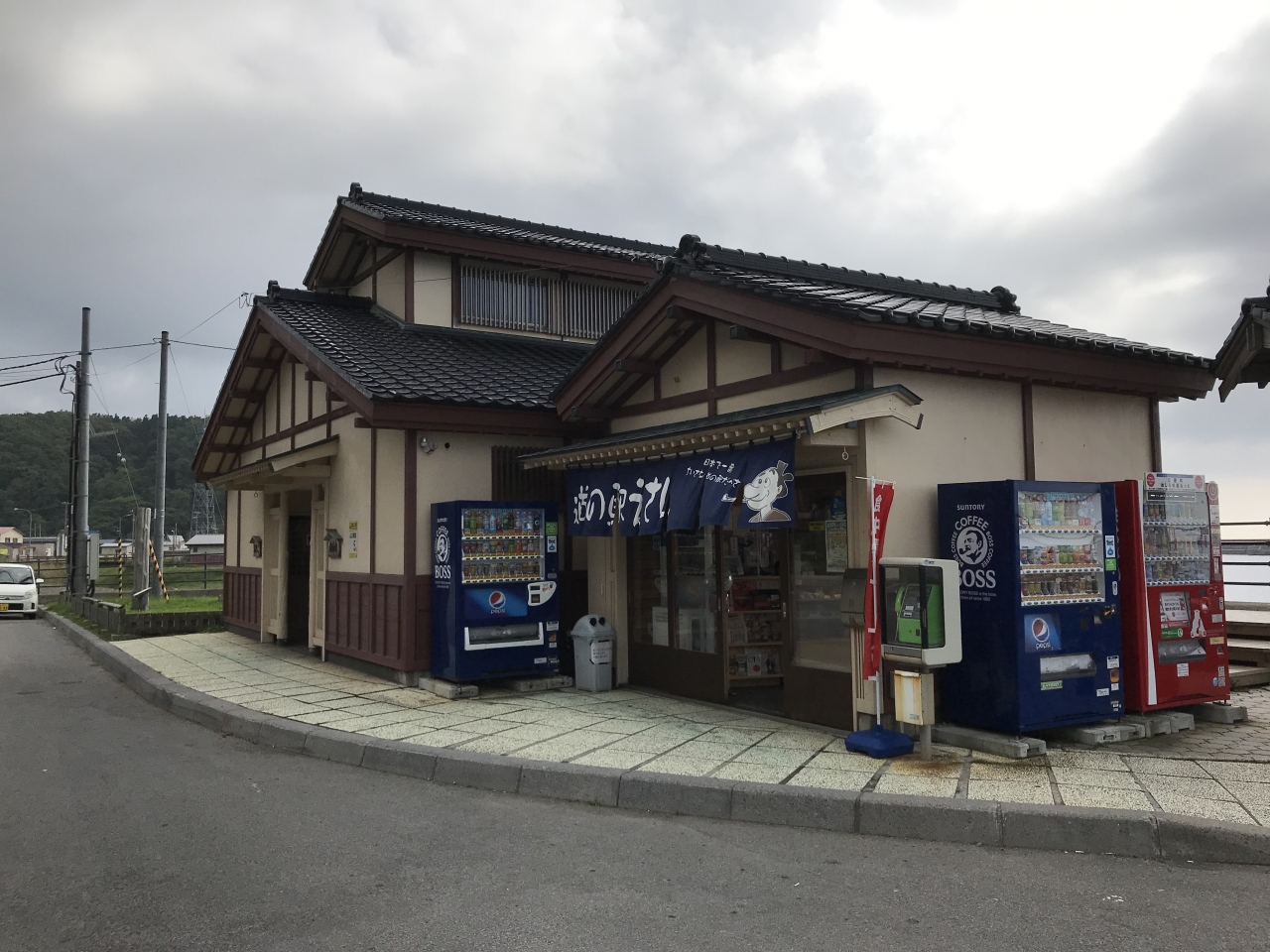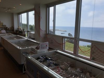 上ノ国町は、農業も漁業もさかんだそうで、物販エリアでは野菜のほか魚介類も販売されていました。また、道の駅周辺が展望スポットになっています。高台にあるので、とても眺めが良く、海岸線や日本海が一望できます。別棟には24時間トイレがあり、新しくて綺麗でした。