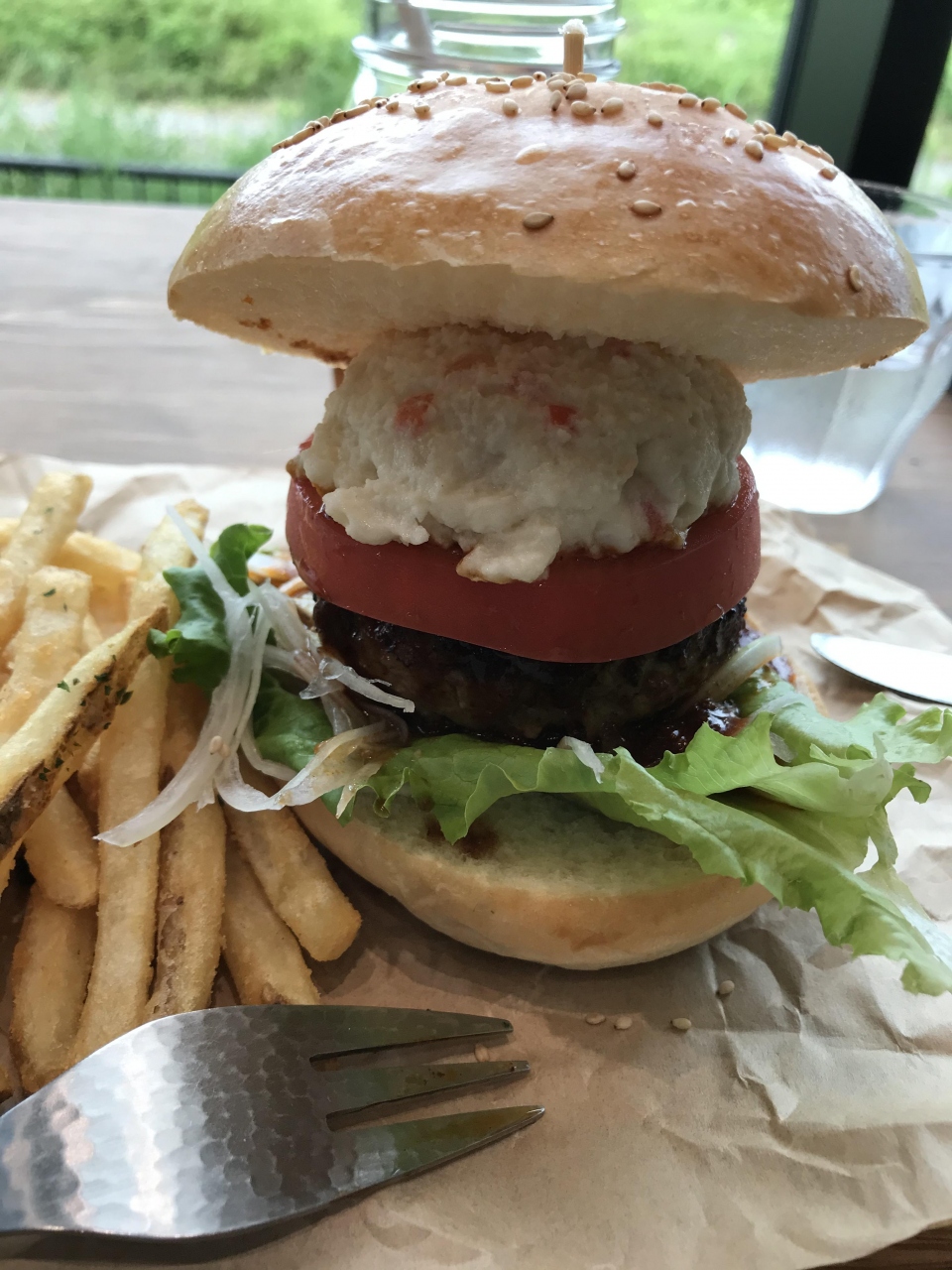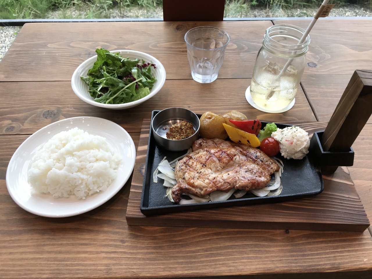 奥のレストランでは、地元産の食材を使った料理がいただけます。メニューは、パスタ、ステーキ、ハンバーガーなどの洋食で、ボリュームもあって美味しかったです。- 旅行時期