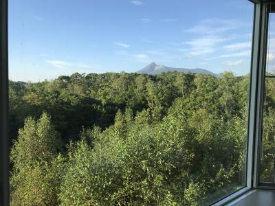 レンタカーでアクセスし、函館空港までは車で50分くらいでした。大沼のすぐ近くにあって、周囲は大自然に囲まれています。散策コースもあるので、滞在中、散歩も楽しめます。客室からは駒ヶ岳が見えました。