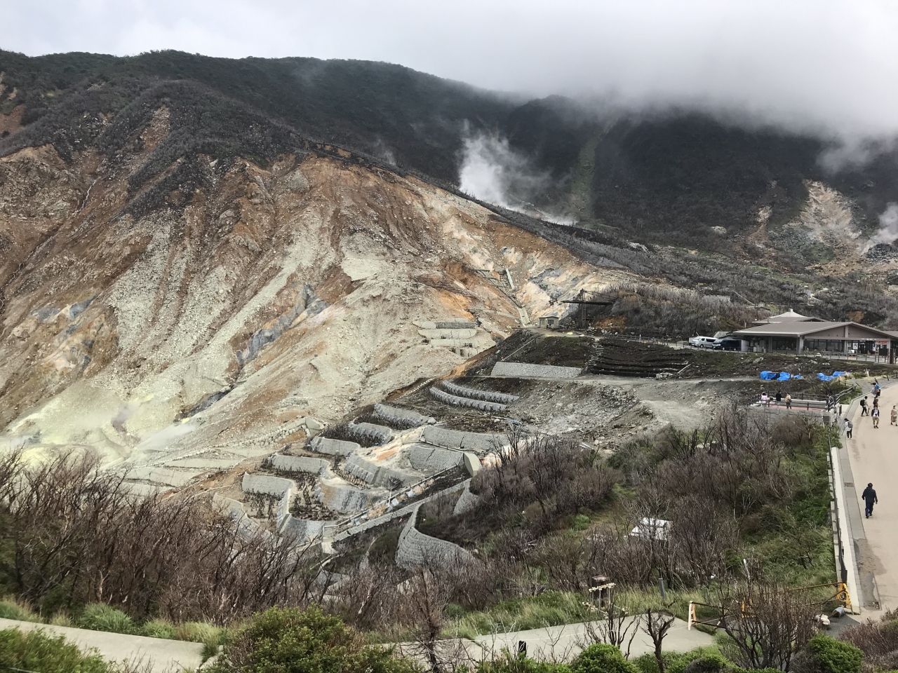 箱根ケーブルカーで早雲山まで行きました。早雲山駅から外に出て、展望スポットを探しましたが、係の方に聞いても駅周辺には適当な展望スポットが無いとのことで残念でした。この時は、早雲山駅は改修中で、リニューアルオープン直前でした。リニューアルオープン後は、駅舎内に展望スポットができるとのことなので、そちらに期待したいです。